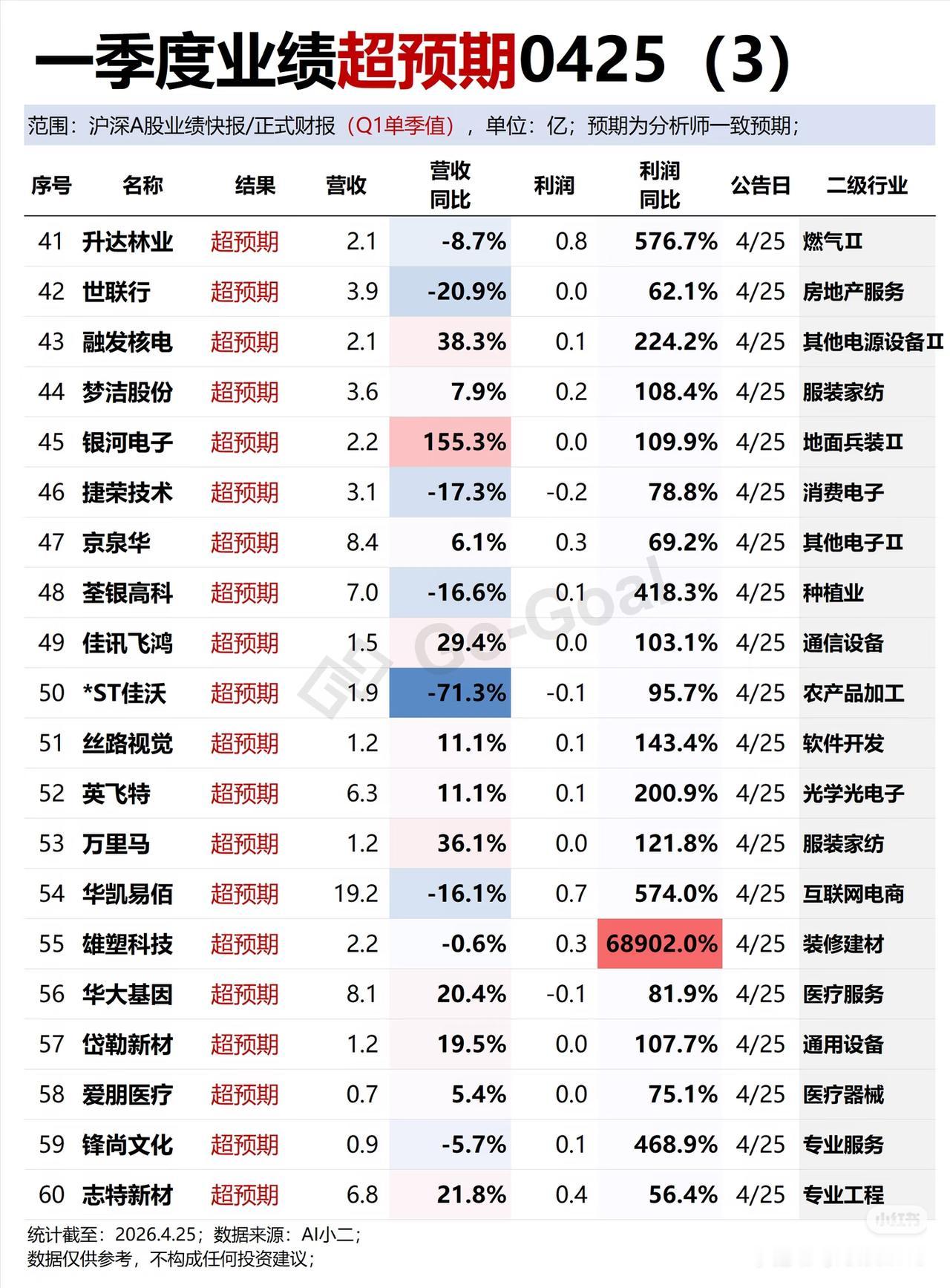 2026一季报“超预期”名单来了,这些票业绩爆了! 一季报披露完毕,这份业绩