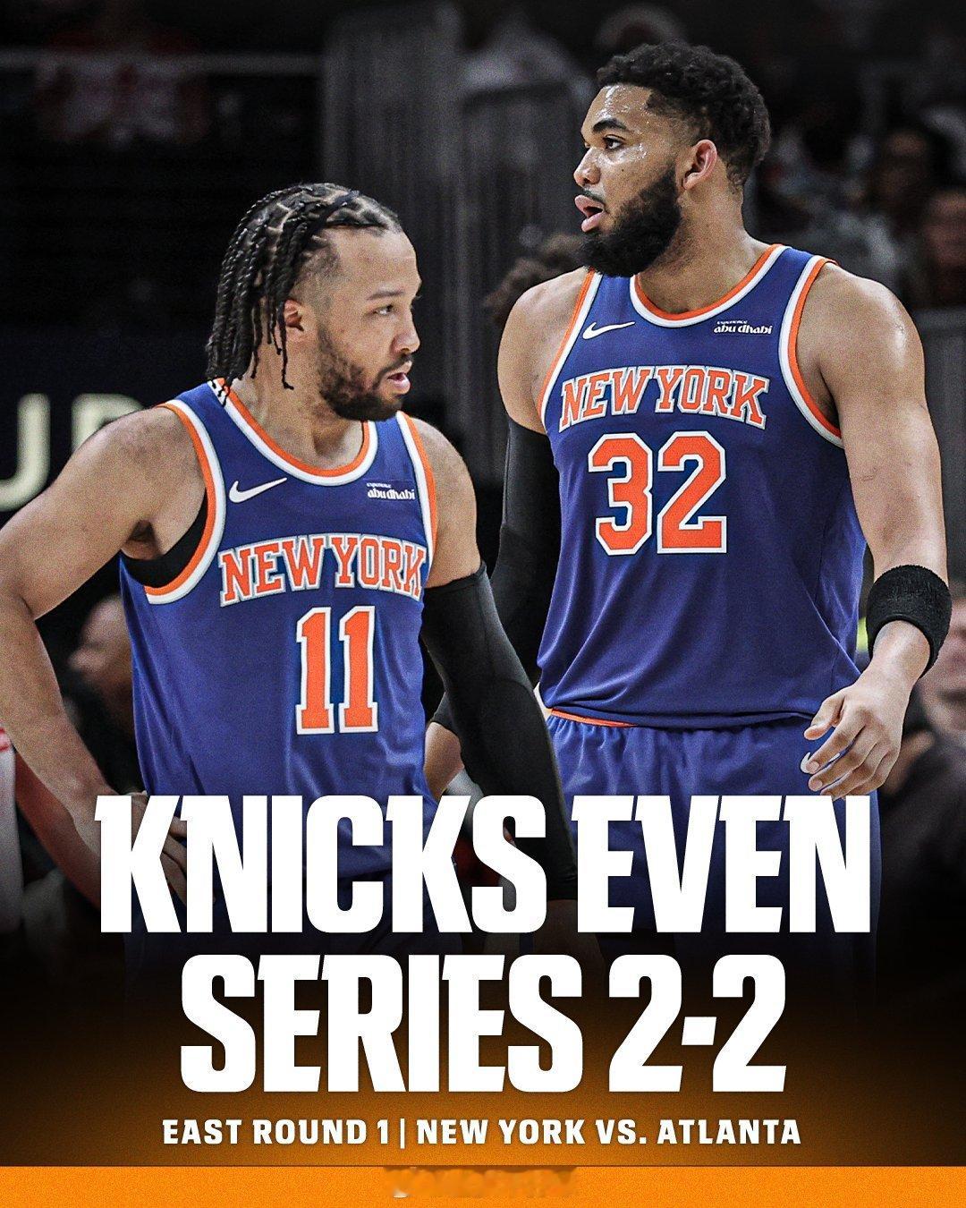 尼克斯客场114-98大胜老鹰!将系列赛大比分扳平为2-2🔥