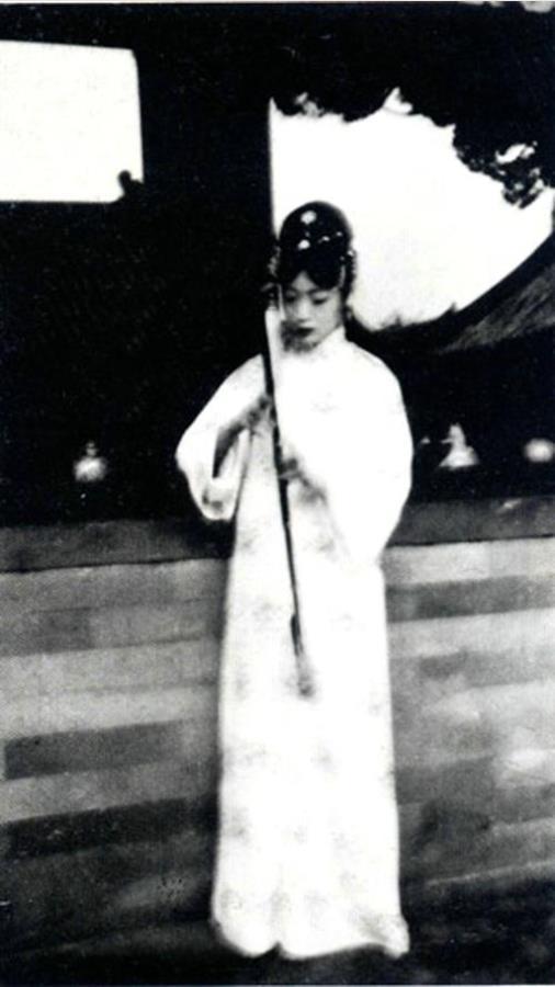 20世纪20年代,紫禁城,婉容身着素白色旗装长袍,头戴简洁旗头,手持长旱烟杆,低头垂目,神情落寞疏离,没有了早期合影里的少女鲜活,眉眼间藏着化不开的忧郁,尽显压抑与孤寂。