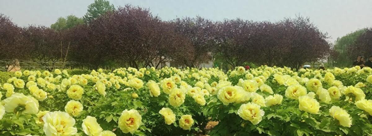 国花牡丹园里,皇冠牡丹正满园金黄。这是晚花品种,花期能撑到五一。