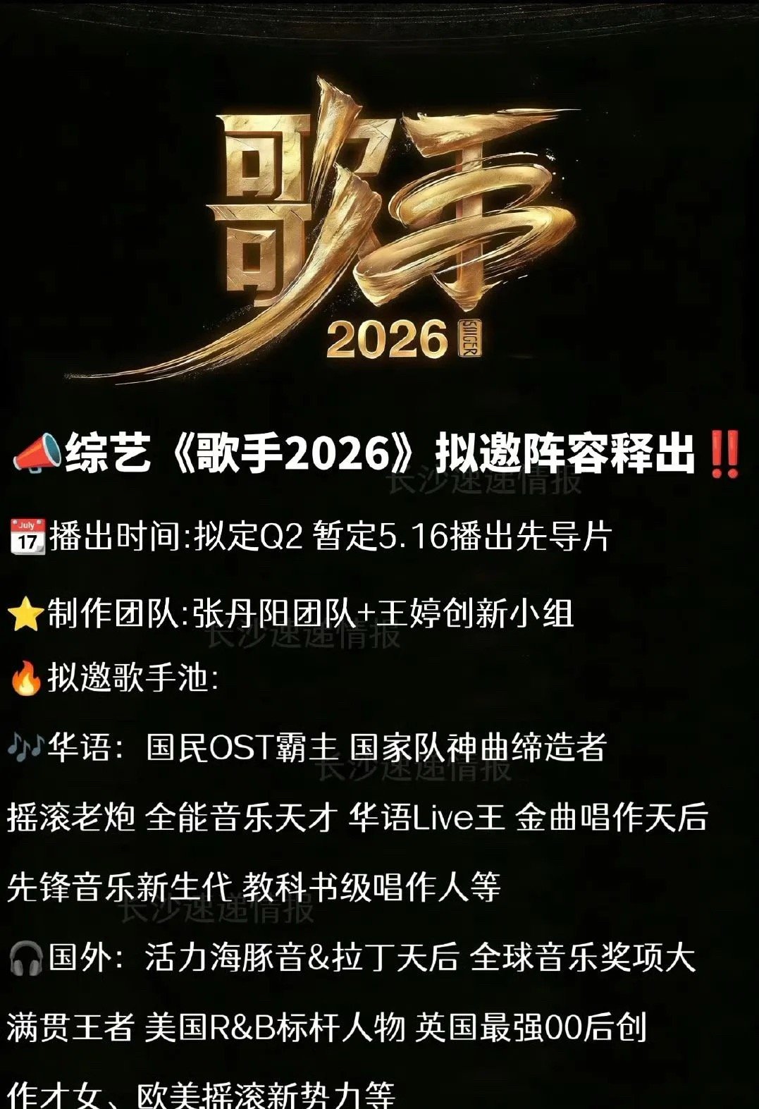 歌手2026歌手2026赛制全面改版,全新月度竞技模式来袭按月比拼轮换阵容,月末末尾淘汰、强者晋级,月度榜首直通决赛。新增双人舞台对垒、素人挑战通道,海外实力唱将加盟助阵。全程真实全开麦舞台,多维度综合评分,曲风多元碰撞,竞技感拉满,期待开播!