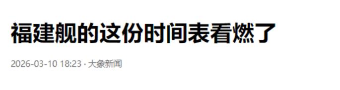 信源:福建舰的这份时间表看燃了 2026-03-10 18:23·大象新闻