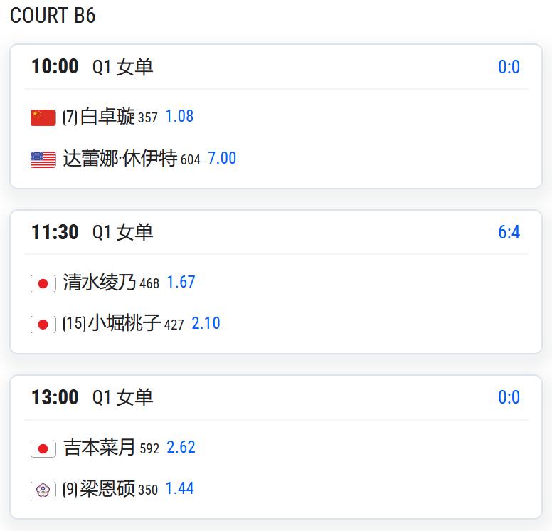 W100岐阜,女单资格赛第一轮,白卓璇以7号种子出战,将对阵美国的休伊特;
