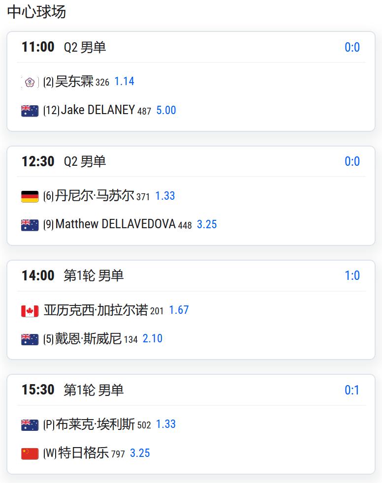 CH75九江,男单第一轮,持外卡参赛的特日格乐将对阵用保护排名出战的埃利斯。