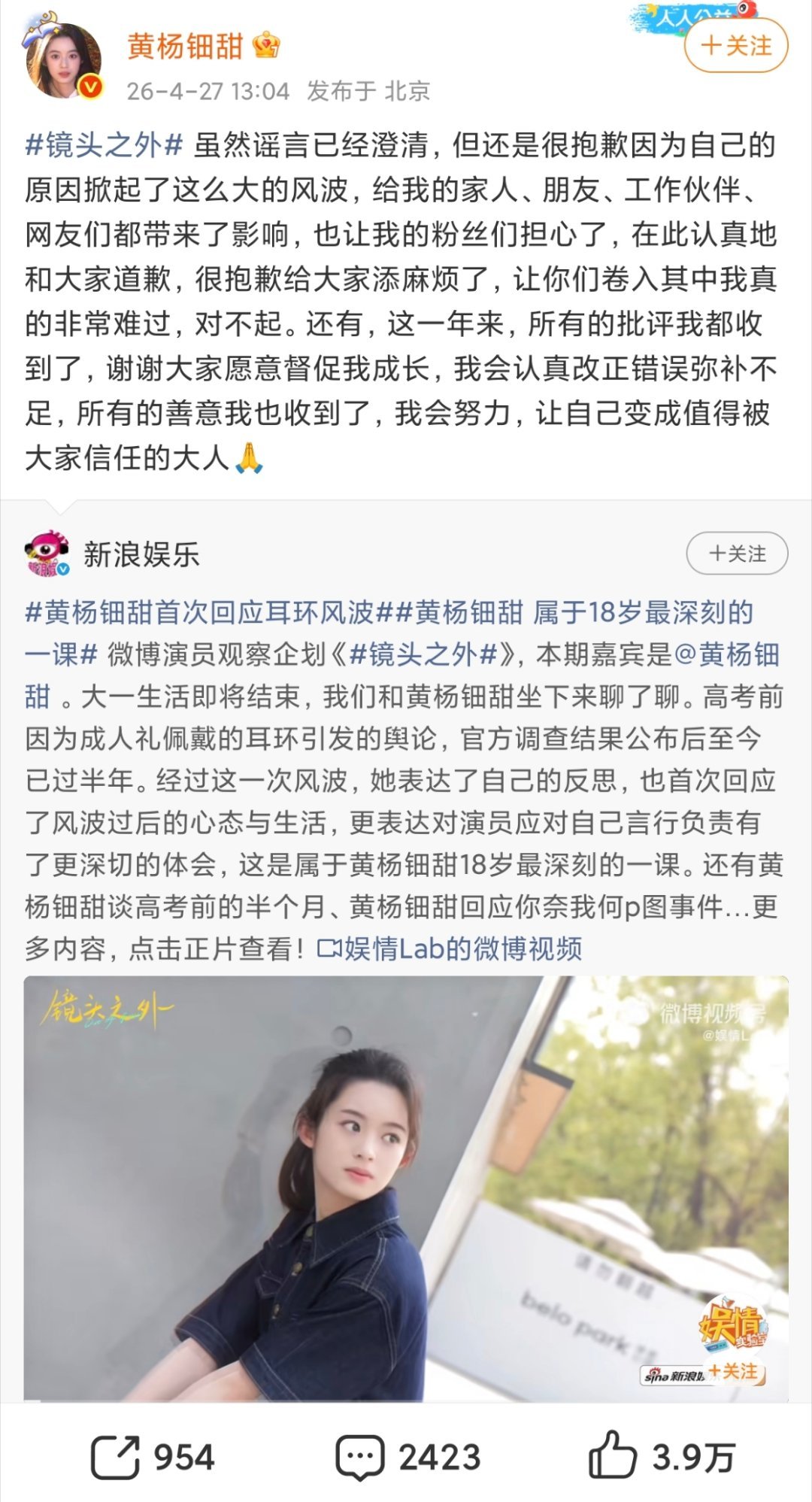 噢可能很多人不知道,黄杨钿甜耳环事件为什么难以让人信服。因为事件一出,经纪公司说
