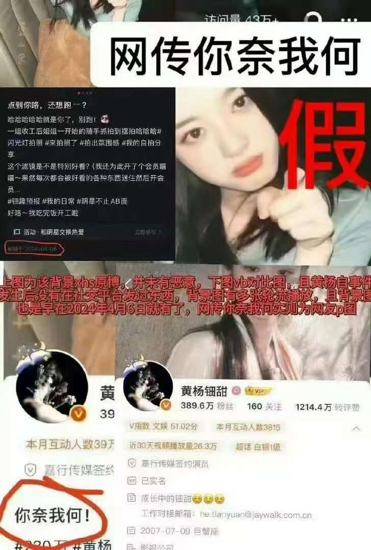 黄杨钿甜回应你奈我何p图事件终于真相大白,原来那张"你奈我何"是网友P的,原图是