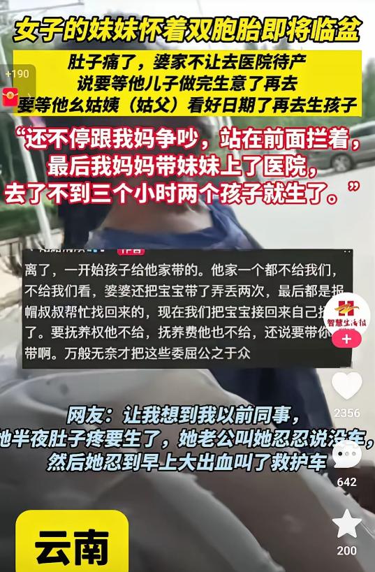 “太奇葩了!”云南,一女子怀了双胞胎,这天感觉快要生了,但是婆婆却死活不让去医院