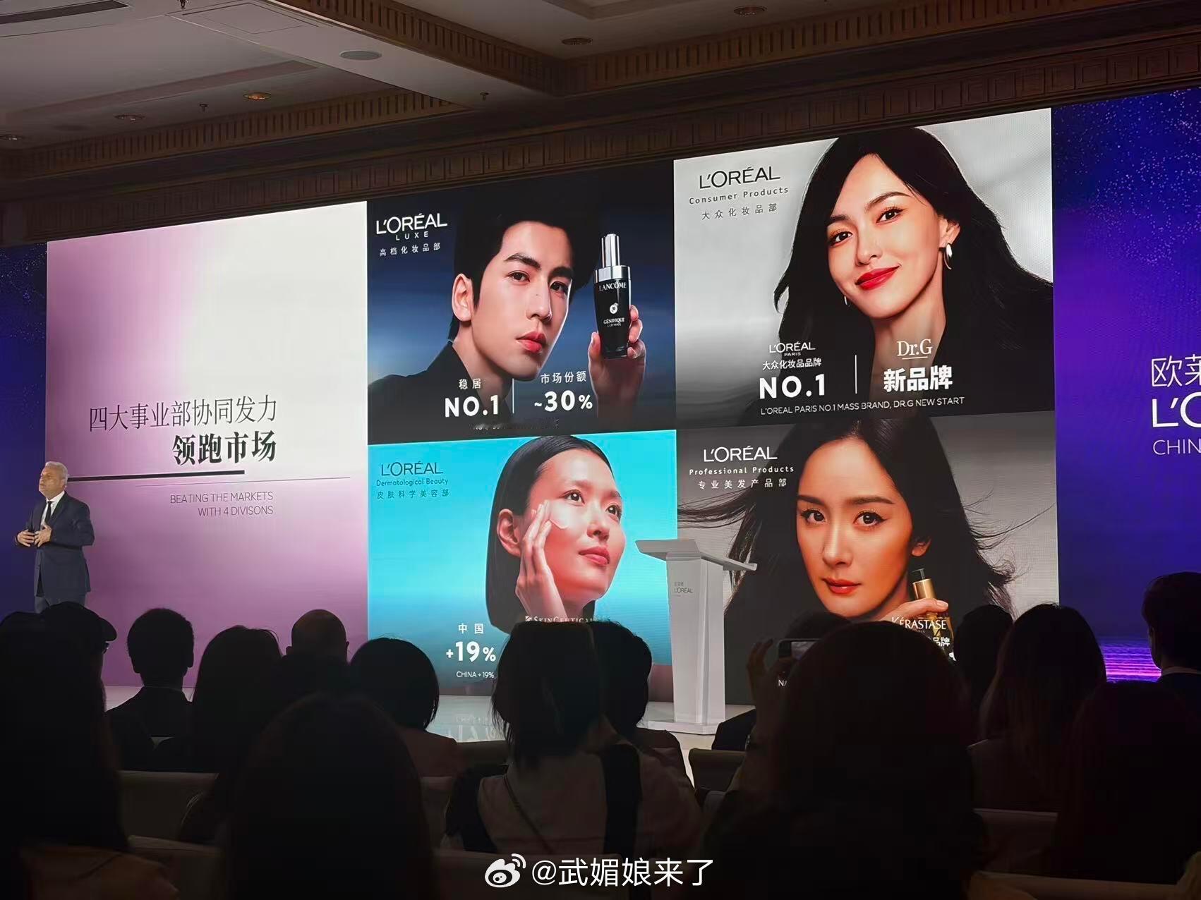 肖战、张凌赫、唐嫣、杨幂、倪妮登上欧莱雅年度战略大会高管PPT