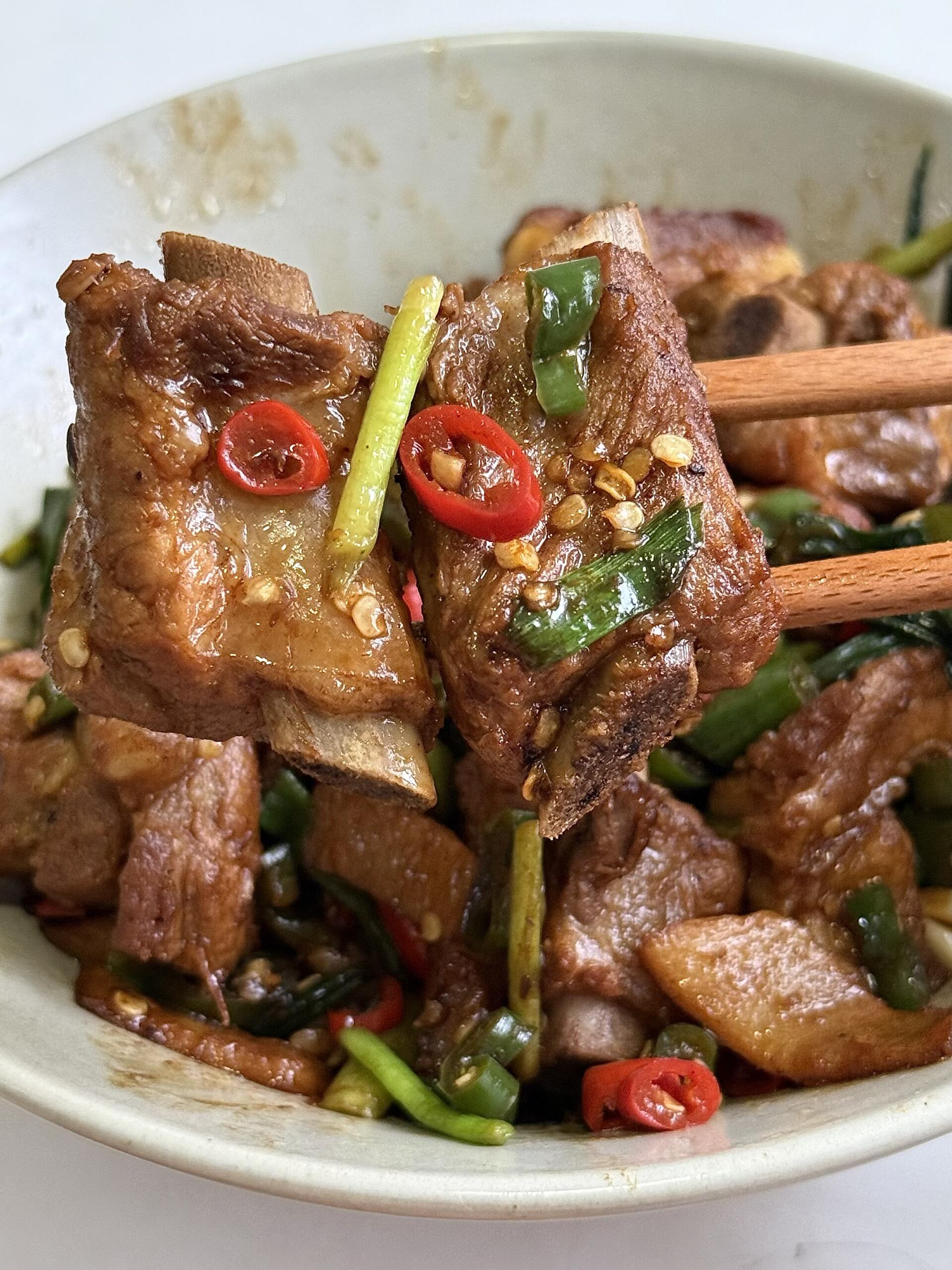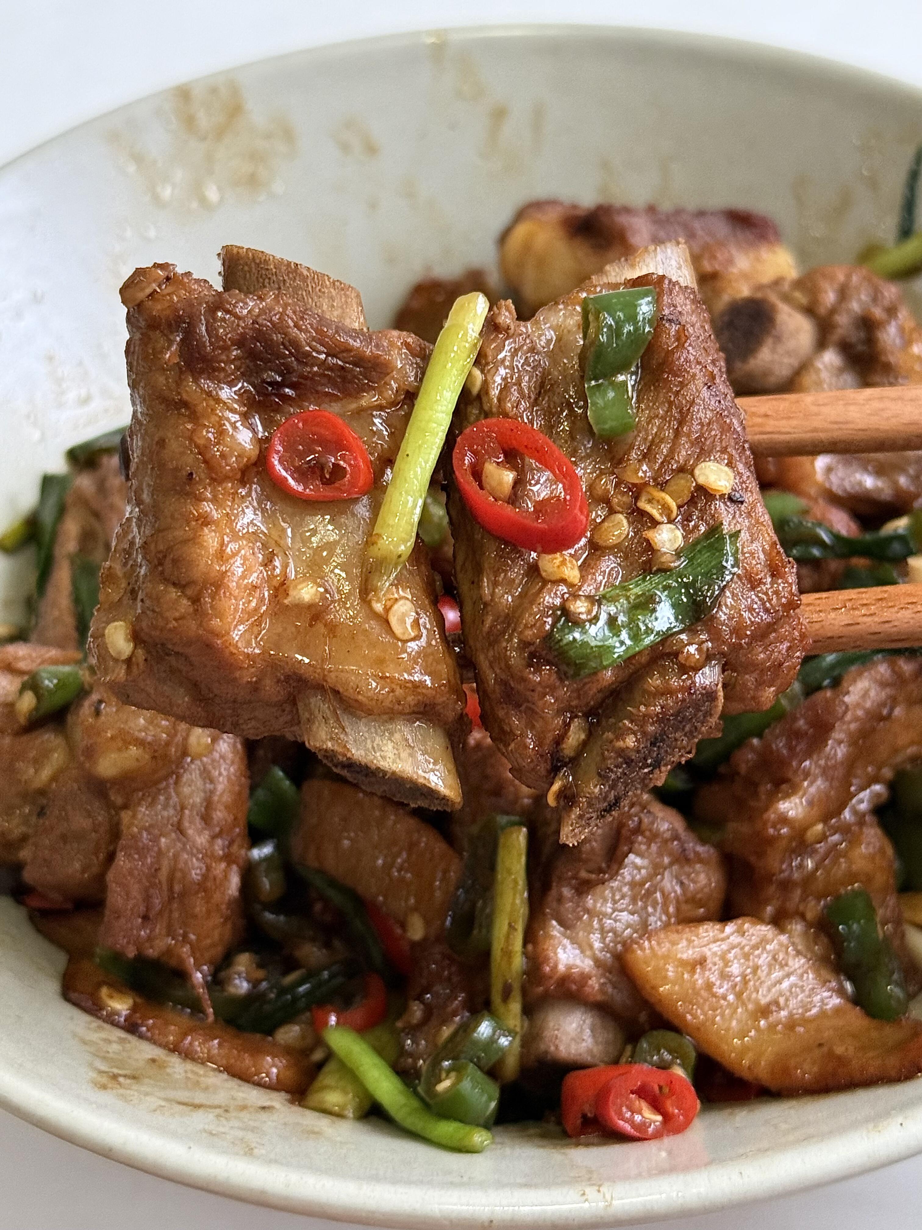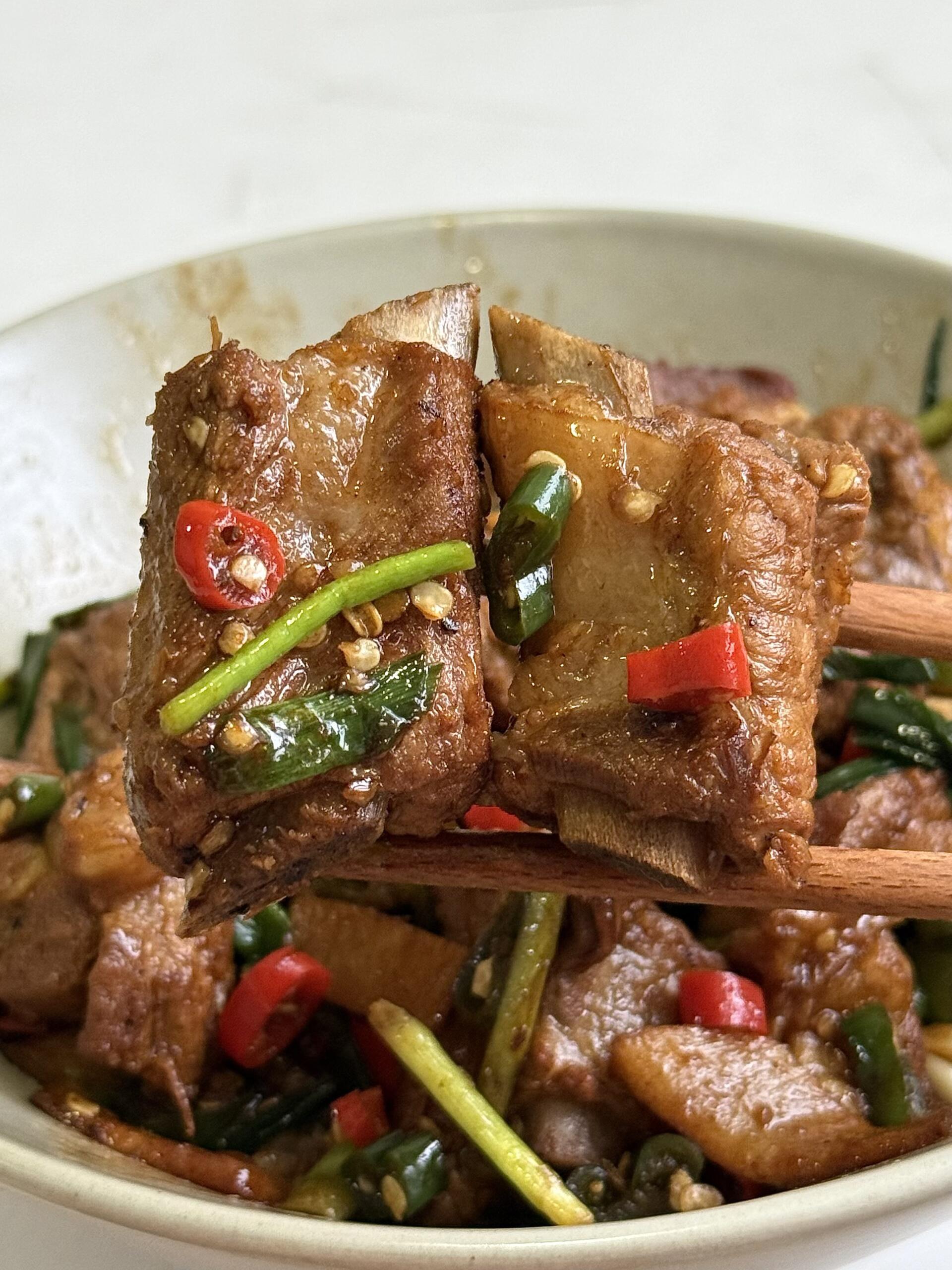 全程没有复杂步骤,重点是排骨先煎后焖,既能保证外皮焦香,又能让内里软嫩入味,鲜辣不呛喉,配米饭、配馒头都绝了,爱吃排骨的一定要试试~