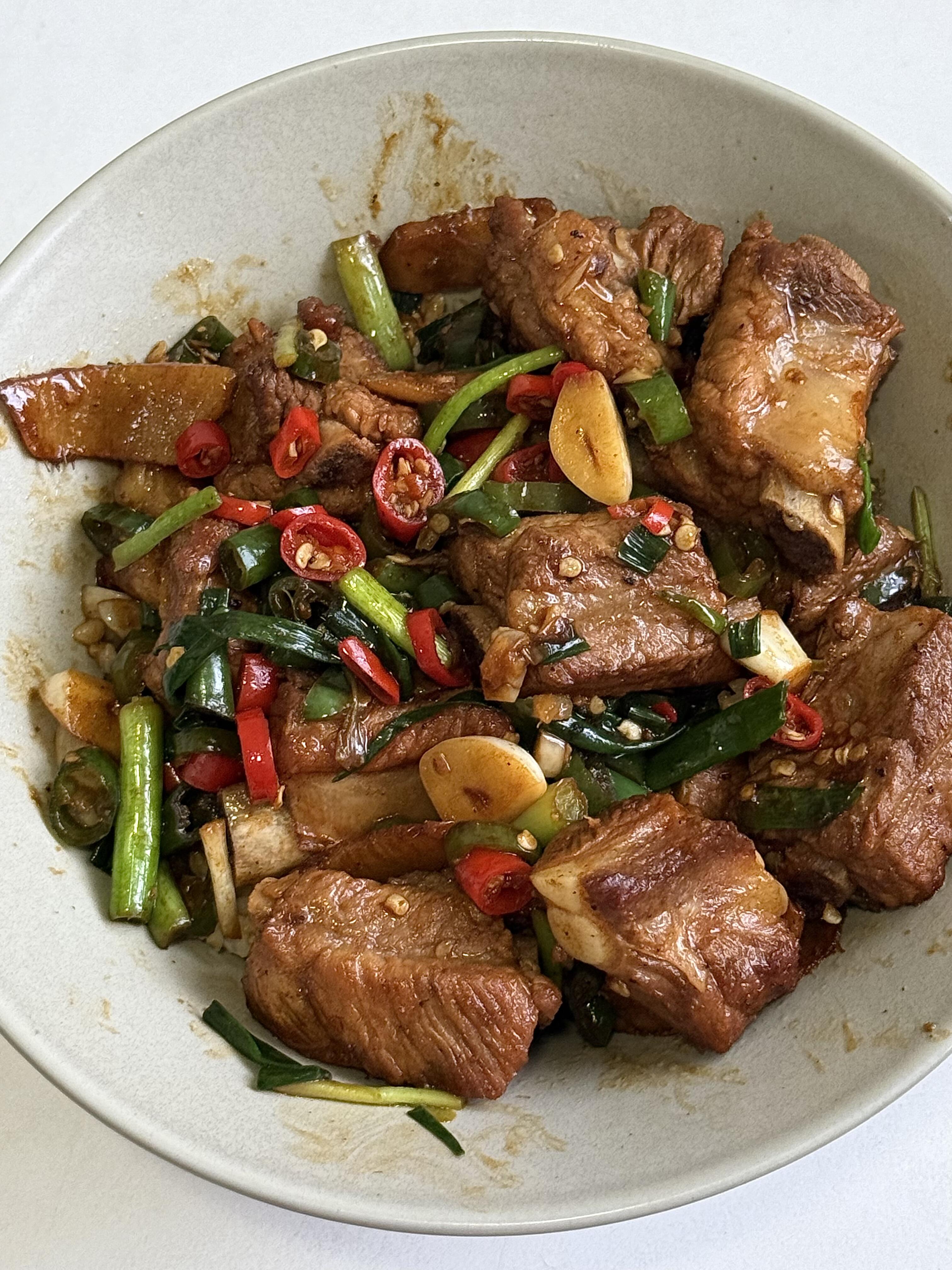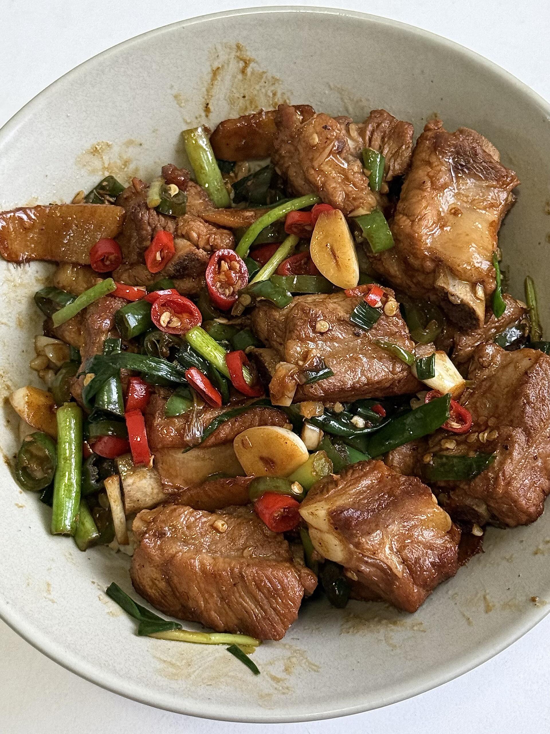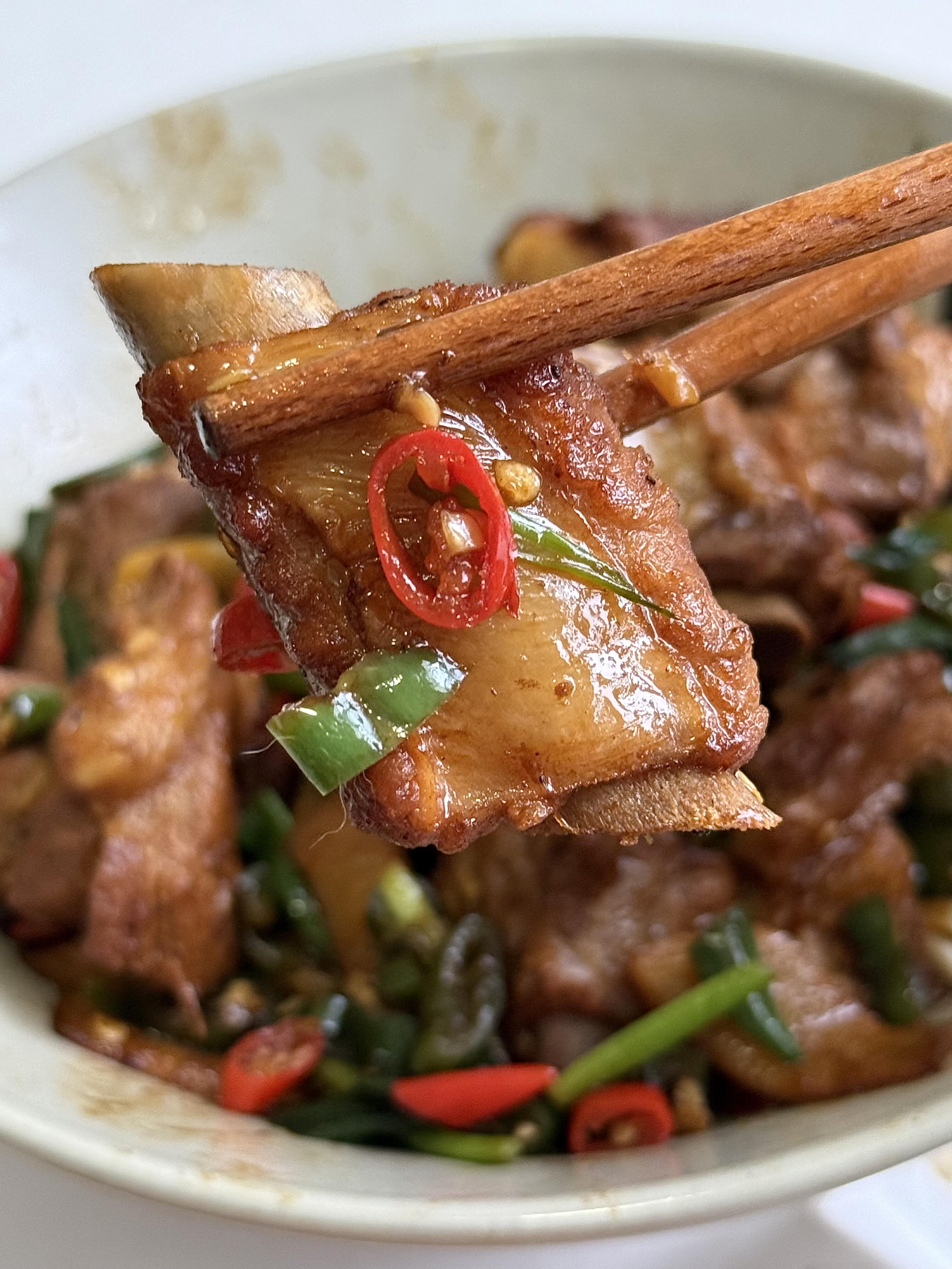 全程没有复杂步骤,重点是排骨先煎后焖,既能保证外皮焦香,又能让内里软嫩入味,鲜辣不呛喉,配米饭、配馒头都绝了,爱吃排骨的一定要试试~