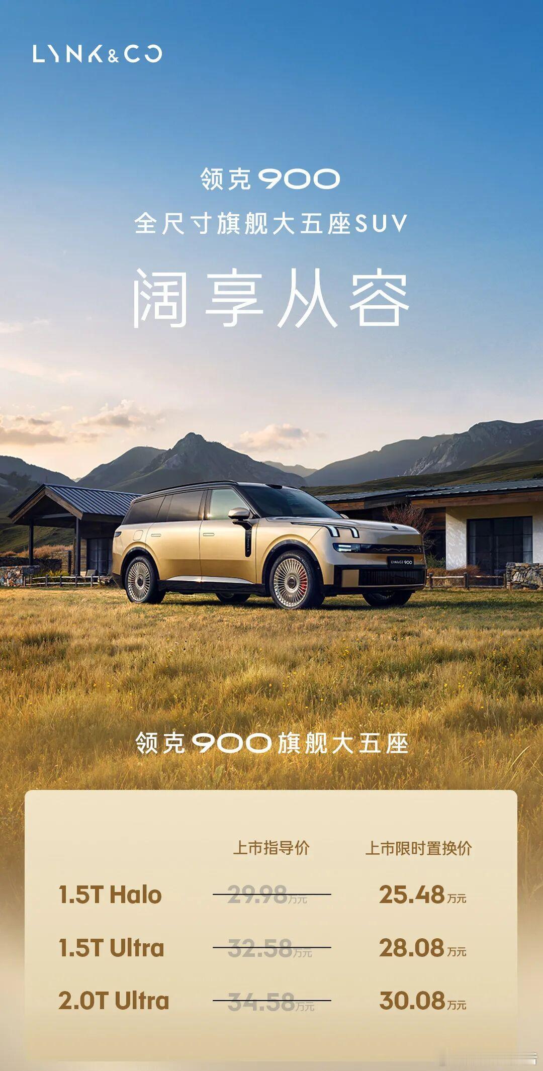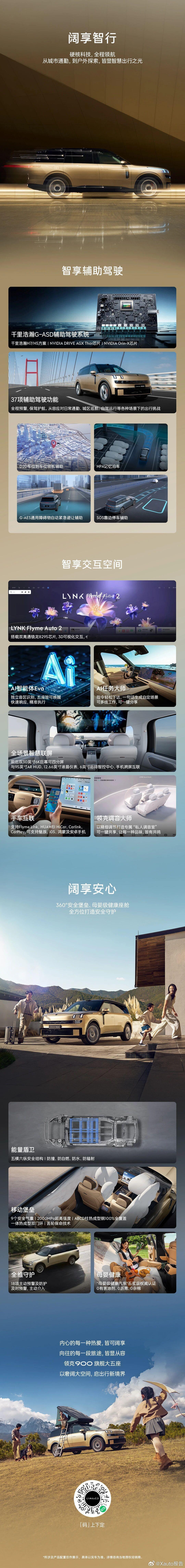 4月27日,领克全尺寸旗舰SUV领克900大五座版正式上市,推出3款车型,售价29.98万-34.58万元,限时置换价25.48万-30.08万元,以“价格+配置”双重优势直击同级市场。新车基于SPA Evo大型电混专属架构打造,车身尺寸达5240mm×3160mm,座舱得房率88.2%。核心亮点集中在空间表现:二排腿部空间最大可拓展至1120mm,配备同级独有的1.35m×0.85m二排儿童床;后备箱标准容积1030L,前移二排后可拓展至1215L,轻松容纳大件物品,实现“移动大平层”体验。座舱科技感拉满,搭载双高通骁龙8295芯片,配备30英寸6K天际屏(前后排)、12.66英寸液晶仪表、95英寸AR-HUD,支持多屏联动与跨屏流转;后排配备娱乐屏与独立控制屏,打造沉浸式乘坐环境。智驾方面实现“技术平权”,入门版即搭载激光雷达。提供千里浩瀚H5/H7两种方案:H5配NVIDIA Orin-X芯片(254TOPS算力),支持高阶智驾功能;H7升级Thor芯片(700TOPS算力),覆盖更全场景的领航辅助与障碍物避让。动力搭载1.5T/2.0T EM-P智能电混系统,匹配3挡DHT变速箱。2.0T版本综合功率540kW,零百加速4.6秒,搭载宁德时代骁遥电池,CLTC纯电续航最高280km,综合续航达1363km,20%-80%快充仅需17分钟;1.5T版本馈电油耗6.95L/100km,兼顾性能与经济性。底盘全系标配前双叉臂+后五连杆悬架,高配提供双腔空气悬架与智能魔毯功能,兼顾操控与舒适。限时置换价下,领克900以全维度配置实力,成为全尺寸SUV市场的“卷王”级选手。领克900为什么要做这么大的五座领克900旗舰大五座场景之王领克900旗舰大五座领克900领克汽车