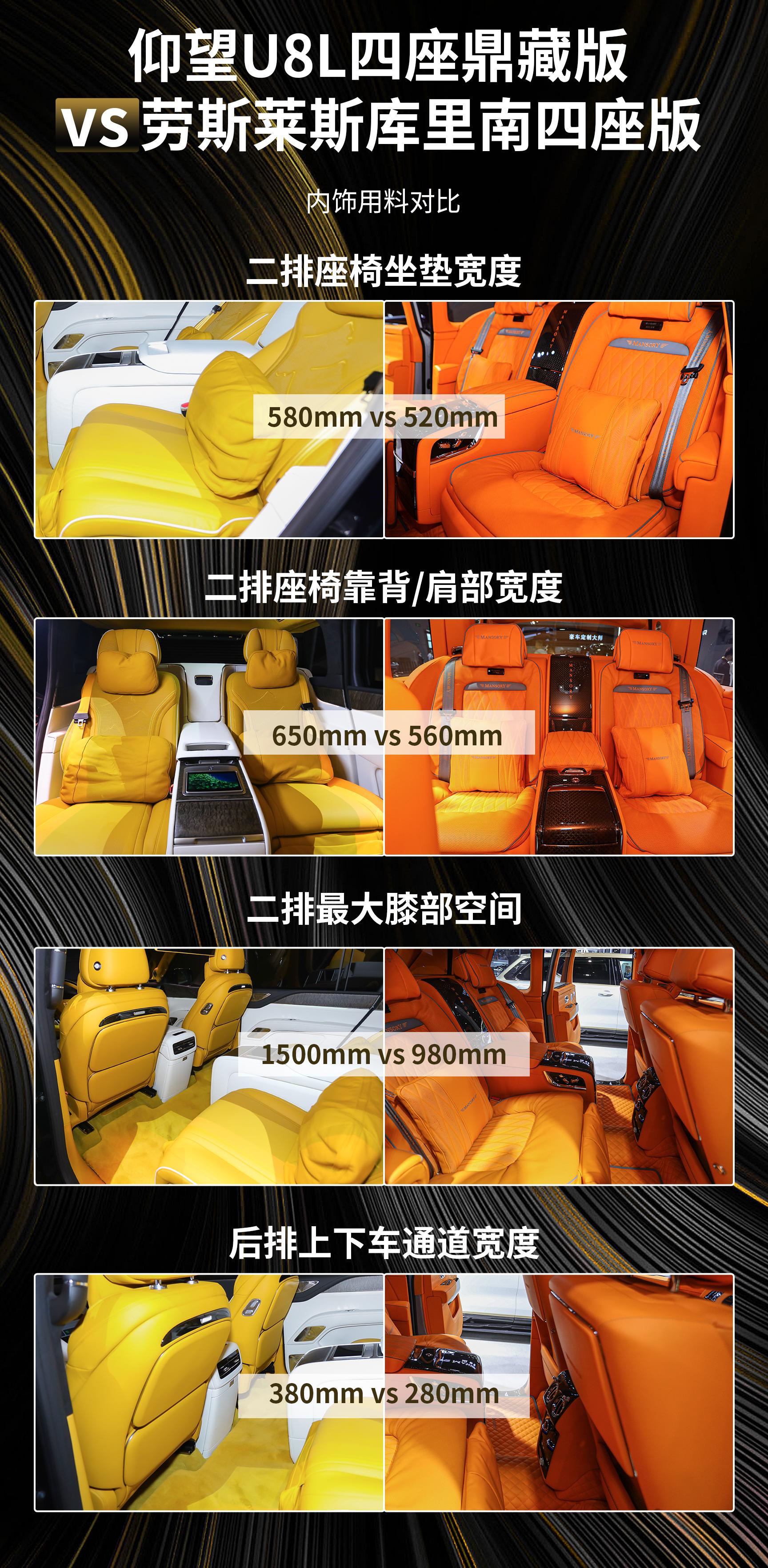 北京车展神仙打架!仰望 U8L 四座鼎藏版硬刚库里南,更长更宽更高,黄色内饰尽显东方奢华,半苯胺真皮 + 珍稀实木,空间与用料双碾压,国产豪华站起来了