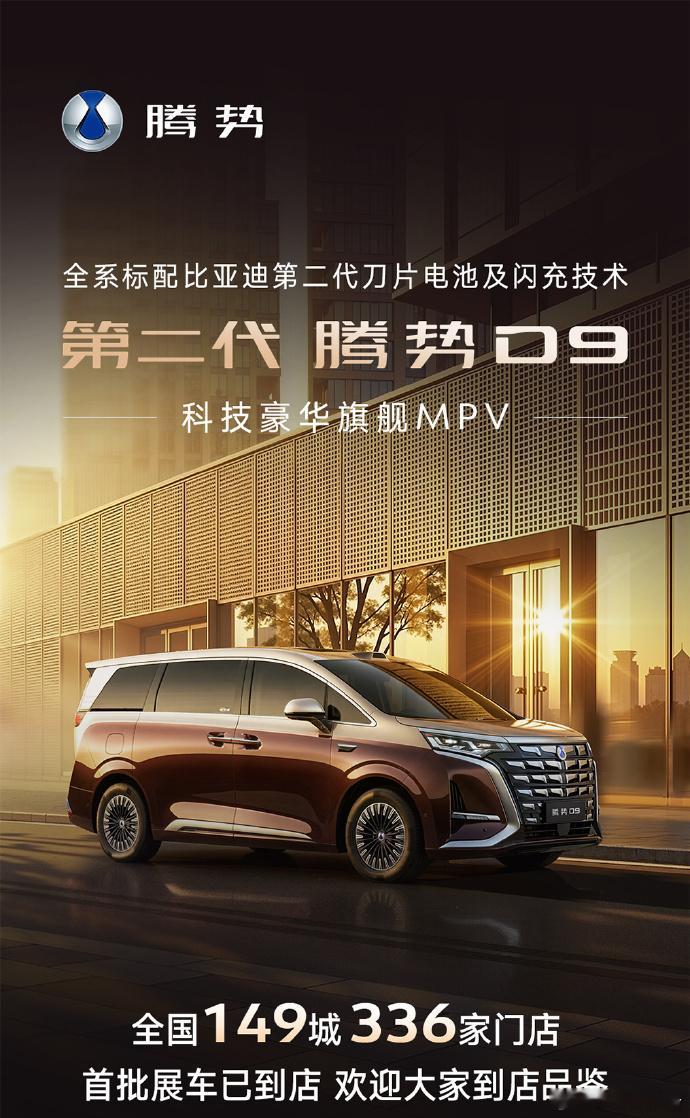 目前全国149座城市、336家门店首批展车已到店,消费者可前往线下门店实地品鉴,近距离感受这款豪华MPV的全面产品力。腾势D9把老车主宠上天了第二代腾势D9万宝宝的新座驾第二代腾势D9第二代腾势D9搭载闪充今晚上市