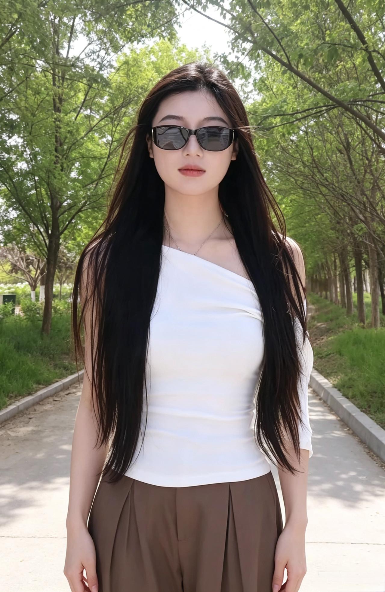 墨镜遮住了半分眉眼,却遮不住周身清冷又明媚的气场。