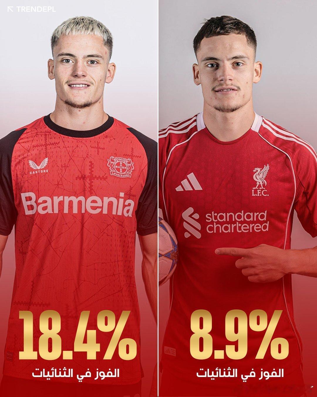 · 维尔茨上赛季在勒沃库森赢得了18.4%的身体对抗,而本赛季仅赢得了8.9%。利物浦