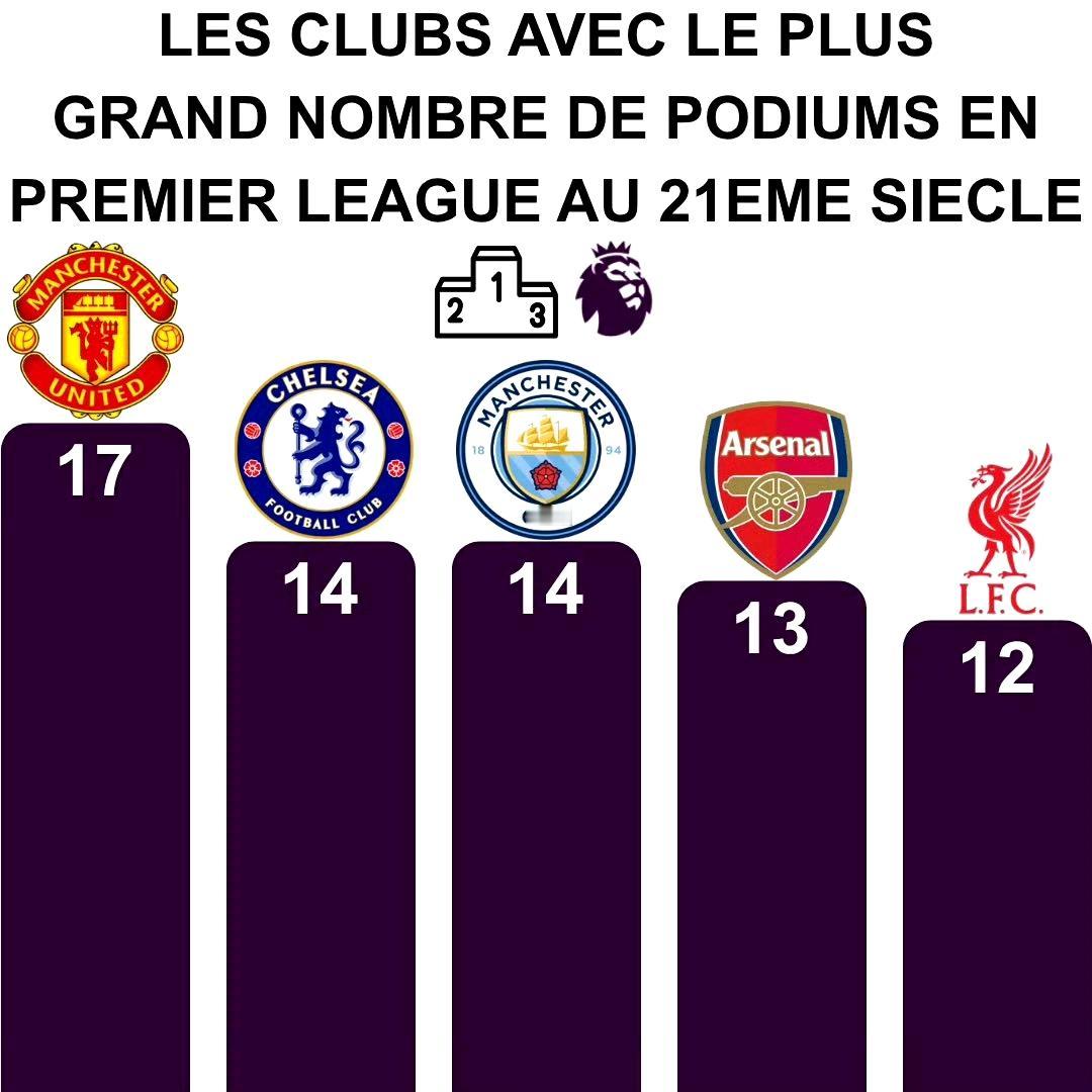 本世纪英超前三次数排名。 曼联17次进前三名,还是最多。 切尔西14次,曼城
