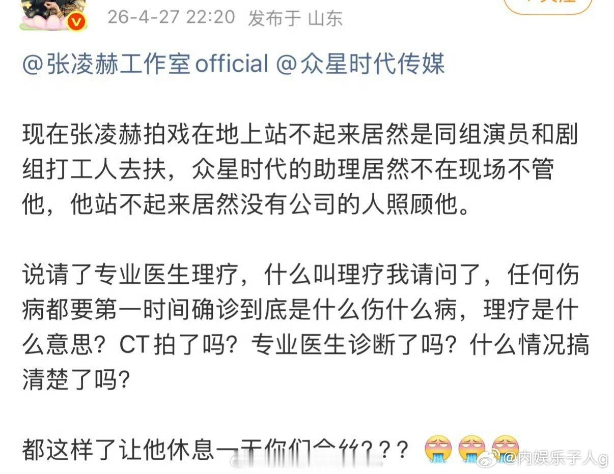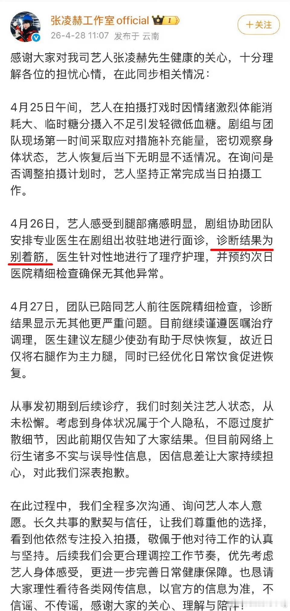 妈耶,这架势,张凌赫竟然只是别着筋…粉丝还是心疼早了…