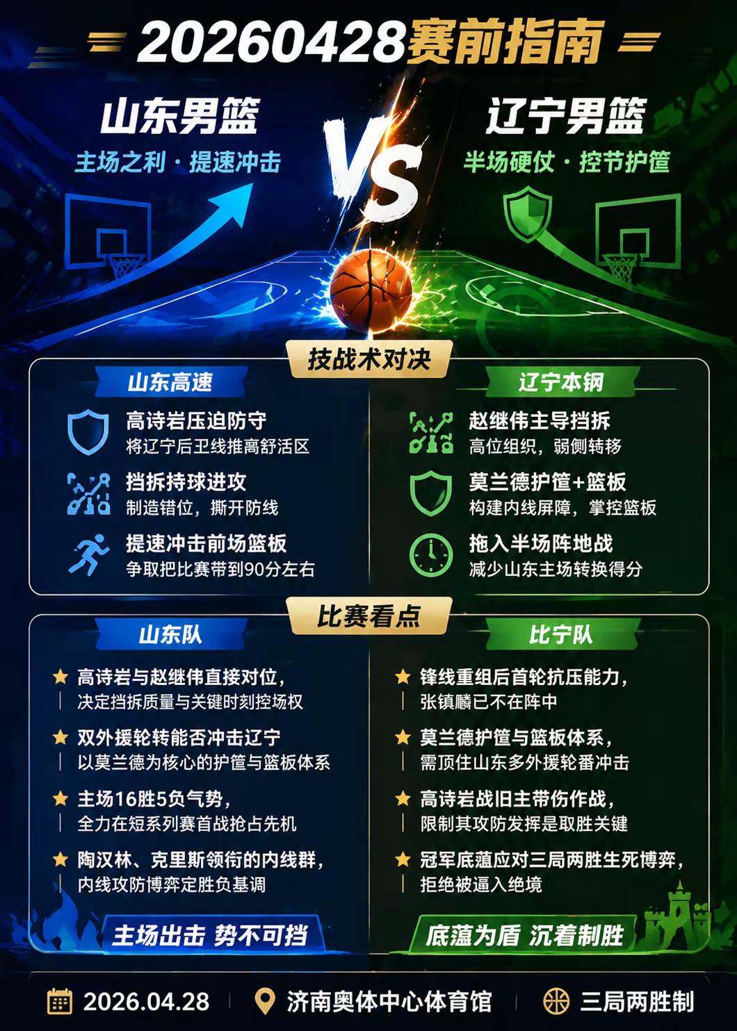 0428赛前指南 山东男篮VS辽宁男篮。