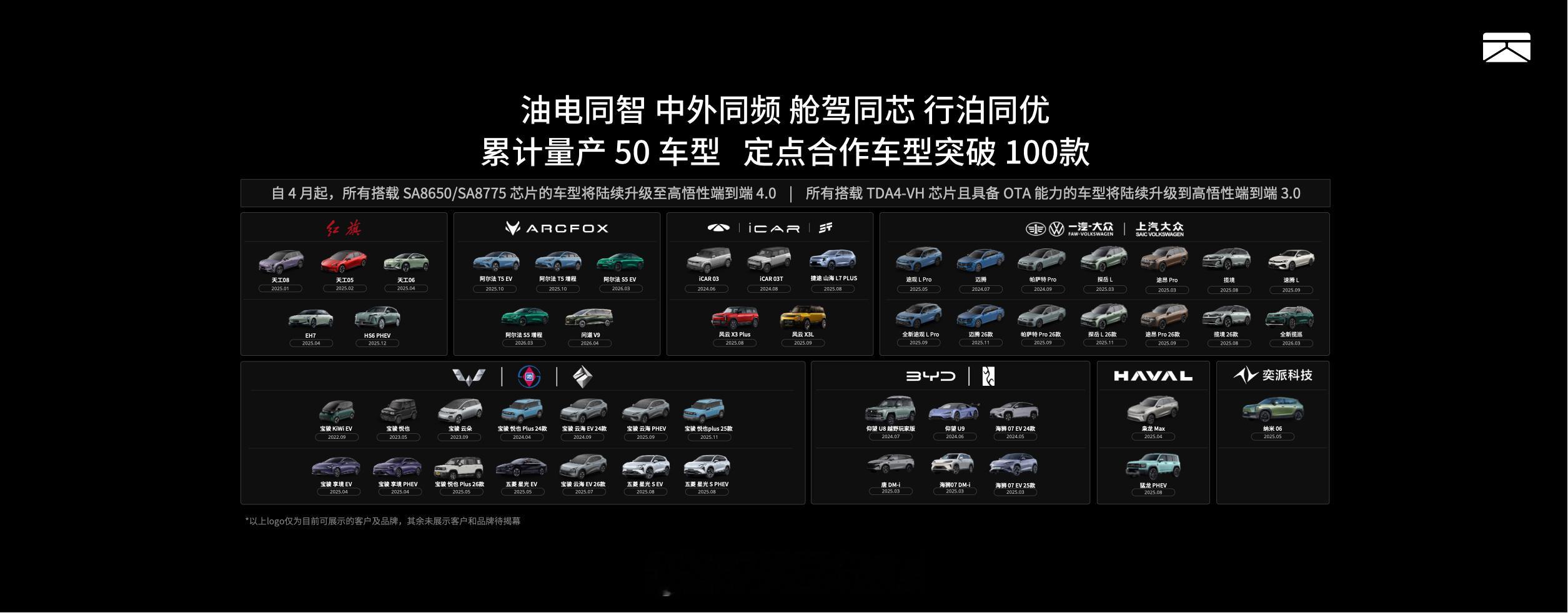 目前卓驭科技从乘用车到商用车,从无人驾驶到无人配送,已携手34家客户,合作车型突破130款。乘用车领域不细说了。
