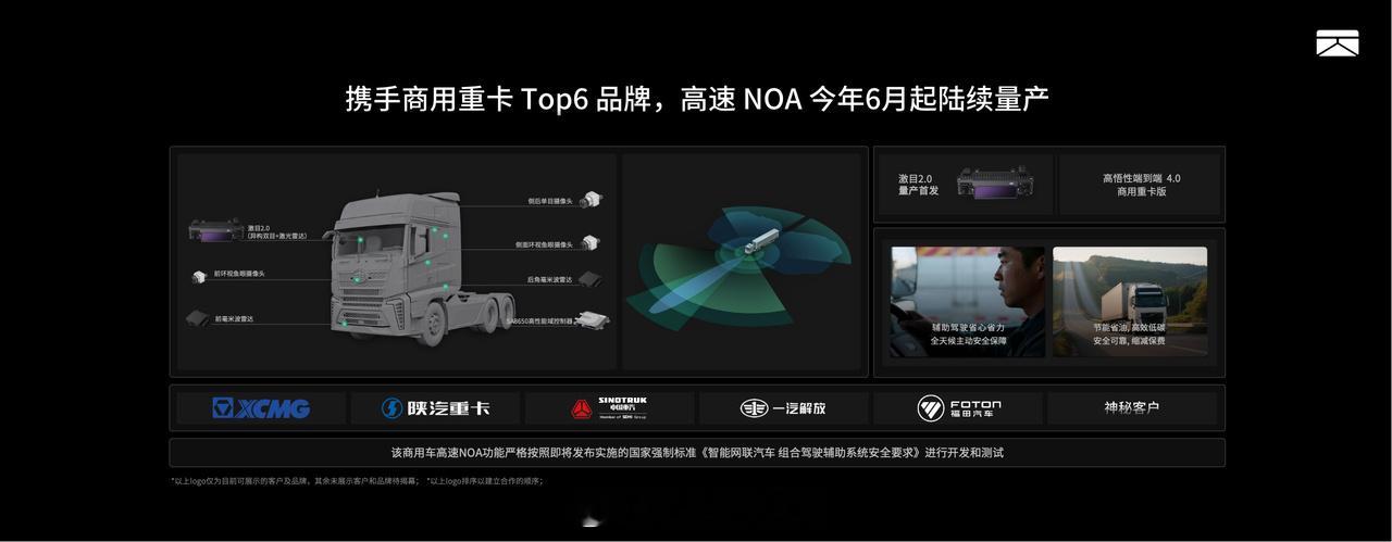 该方案专为安全可靠性要求极高的重卡场景打造,在降低油耗与保费支出的同时,带来安全好用的重卡NOA高速领航体验,进一步提升整体道路安全水平。