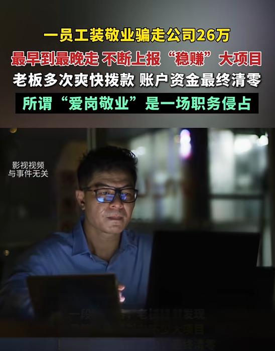 (信息来源:广州日报《“神仙员工”每天最早到最晚走,不断上报“稳赚十几万”大项目,老板多次爽快拨款!一看账户资金,傻眼了……》)