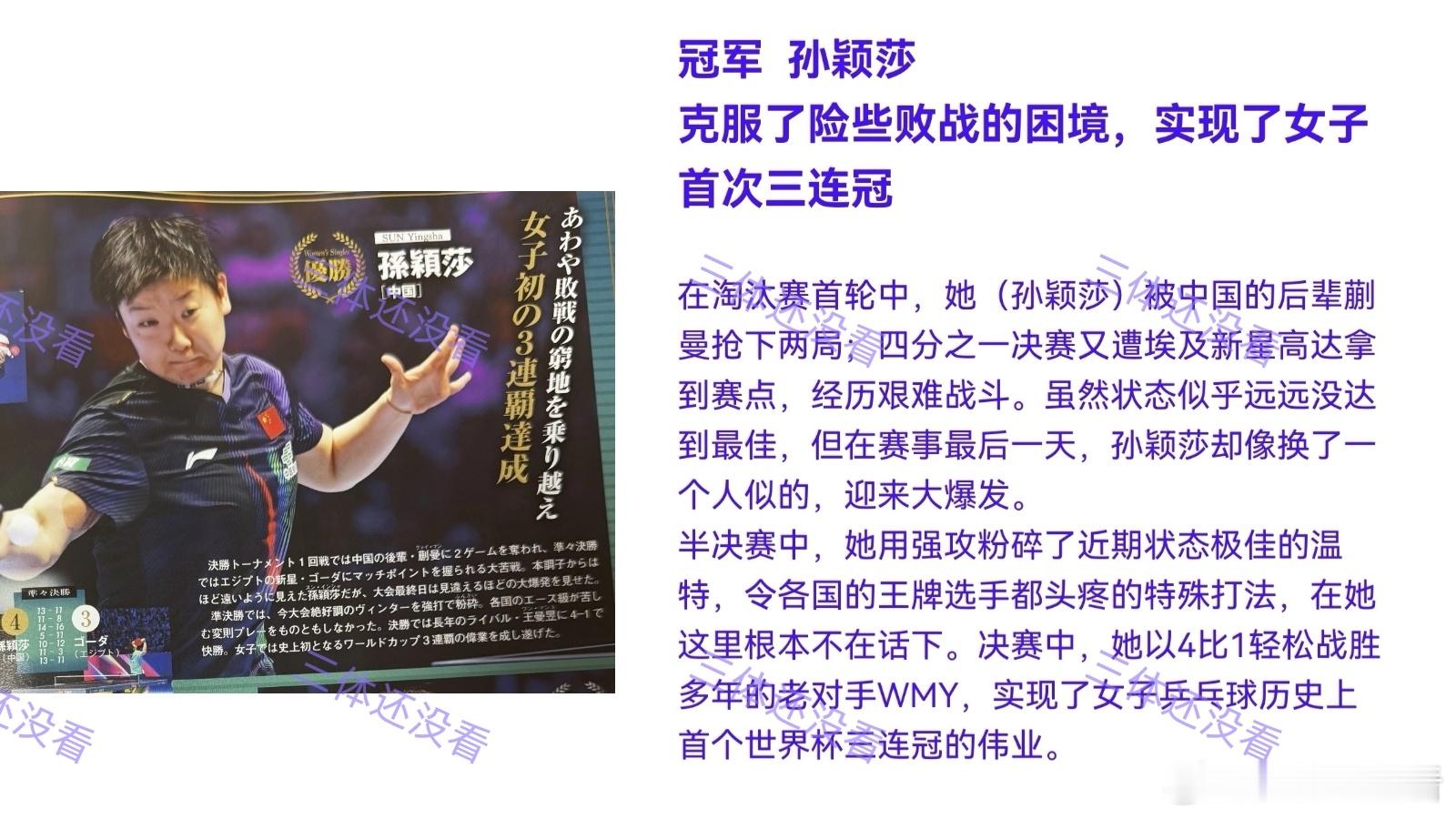 不在封面上,就在内页里。《桌球王国》正在向卷卷有莎名的方向发展。据说这是《桌球王国》4月刊。孙颖莎超级巨星孙颖莎孙颖莎创造历史megastar孙颖莎孙颖莎世界杯女单三连冠