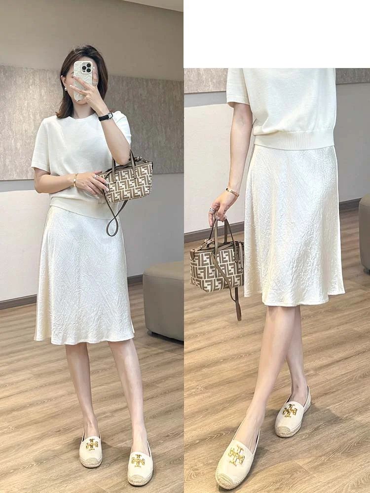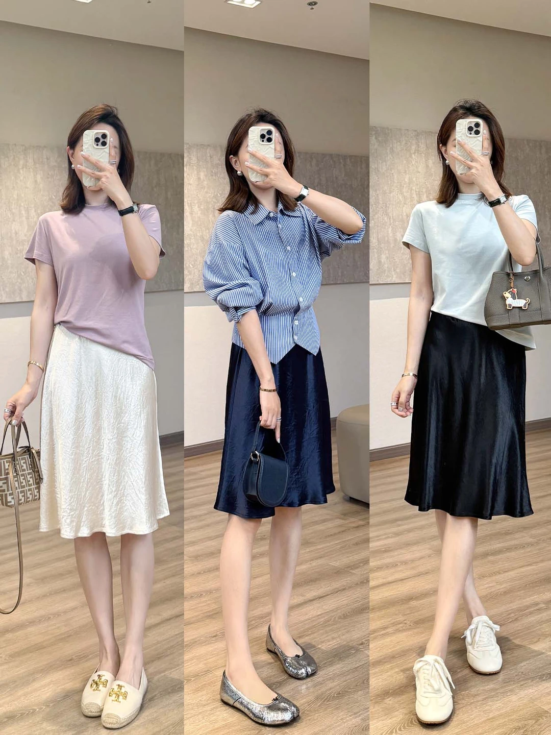 158小个子穿搭 梨形身材穿搭 夏季穿搭 通勤穿搭 醋酸裙 温柔穿搭 高级感穿搭 气质穿搭 半截袖穿搭 时髦穿搭