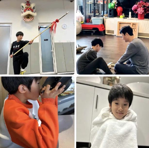 这是谢楠出去参加《乘风2026》 ,京哥负责在家带孩子的节奏呀。俩人的娃都这么大了,第一张娃娃拿着长枪,姿势向上标准,这是要跟父亲一起走上武打之路的节奏。