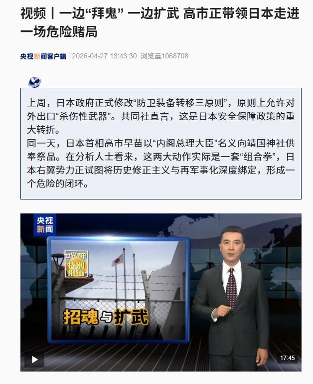 谁能想到接连两天,日本就连着干了两件让国际都震惊的事:解禁杀伤性武器出口,首相高市早苗向靖国神社供奉祭品。