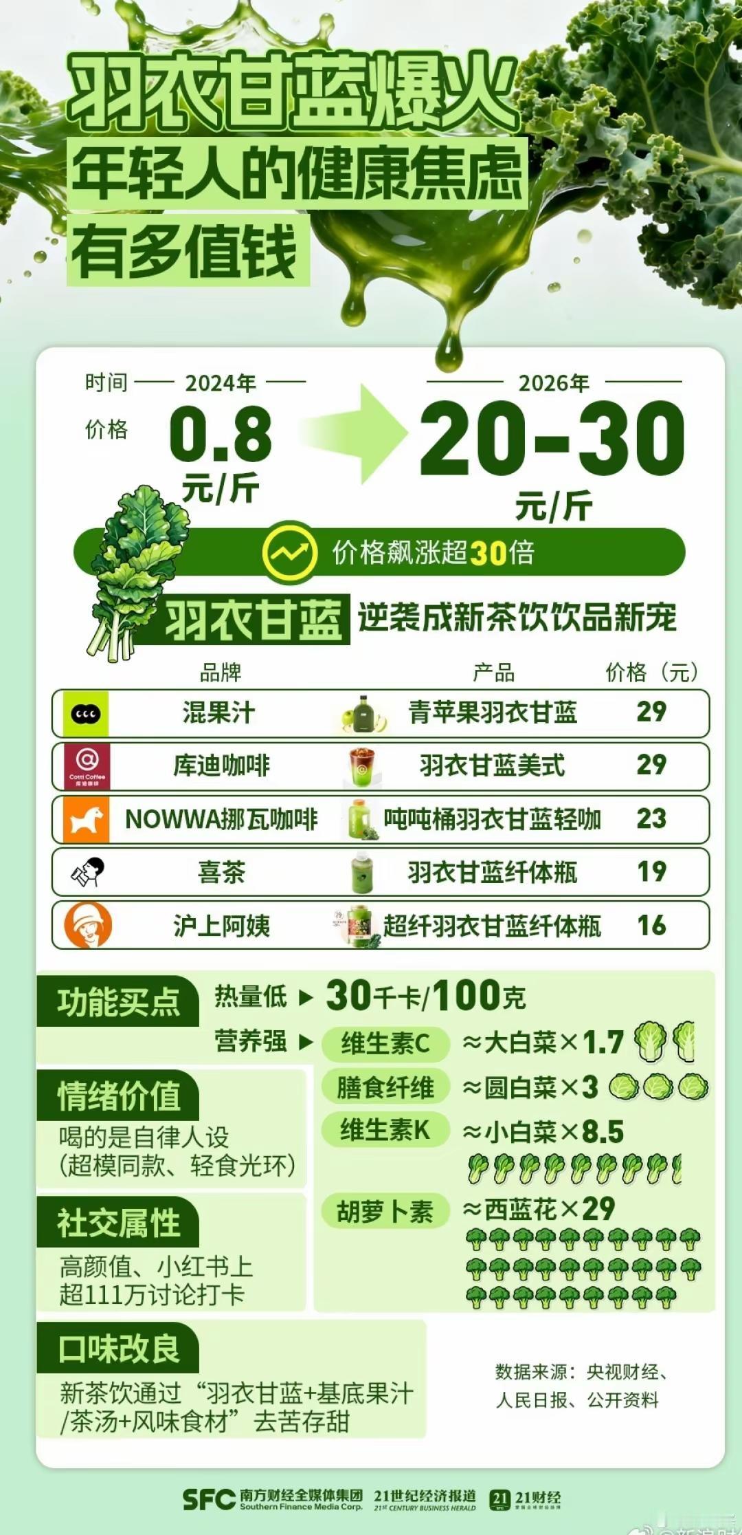 能火成这样,喜茶功不可没!它家“羽衣纤体瓶”一年卖出上亿杯,光这一款就用掉近300万斤新鲜羽衣甘蓝,直接带飞整个羽衣甘蓝市场,连挪瓦、库迪都跟着抄作业✅