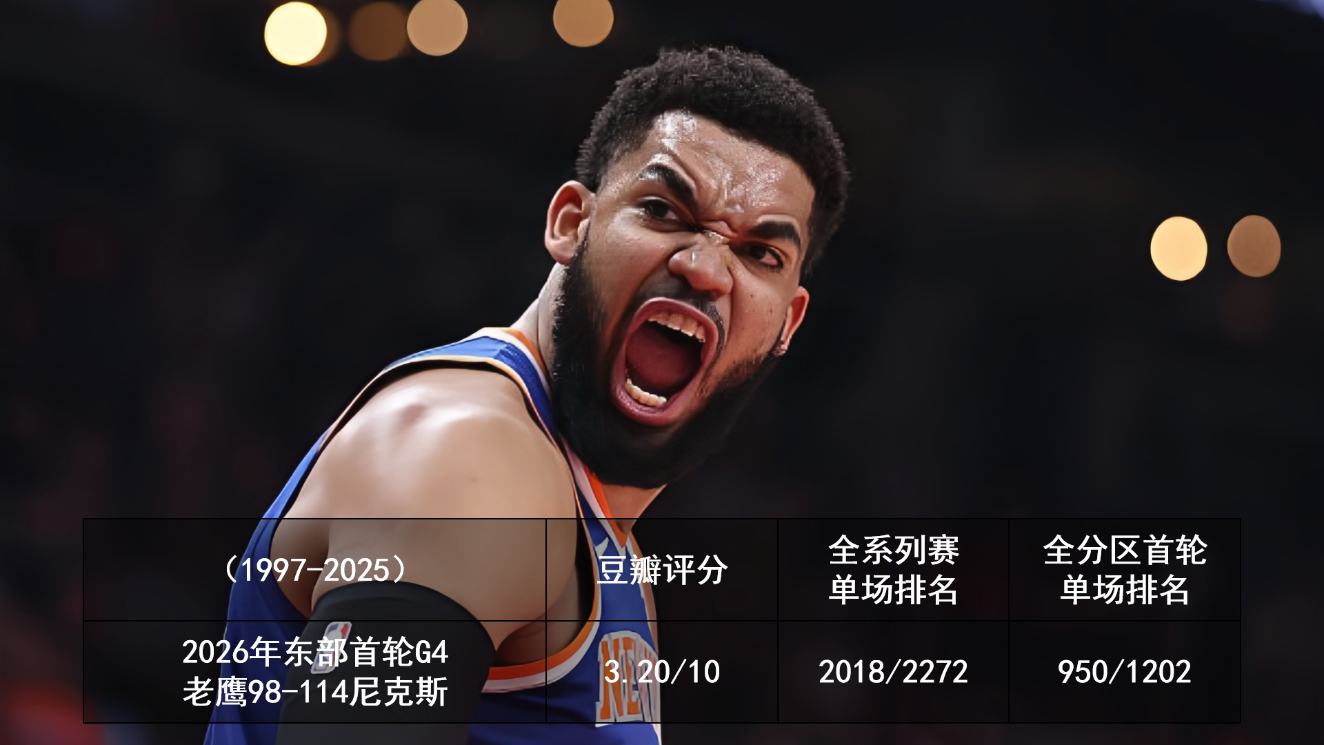 2026.4.26-2026.4.28 季后赛豆瓣评分第一天晚上评完分忘了;第二天白天忙一天晚上喝酒去了;第三天又忙一天拖到现在。2026NBA季后赛