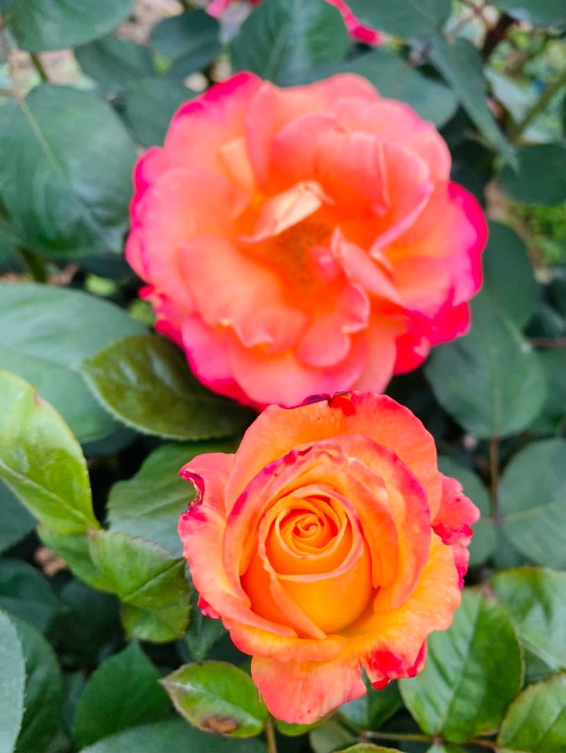 你的美,是一场色彩的华丽交响。明亮的橙黄是你裙摆的底色,仿佛融化了正午的阳光,散发着温暖而耀眼的光泽。而那边缘悄然晕染开来的红,宛如天边最炽热的流云,又似少女羞红的面颊。金黄与橙红在你的花瓣上交织、渐变,没有突兀的拼接,只有大自然最鬼斧神工的过渡。一层层厚实的花瓣,高高地托起一个优雅的杯状,像是盛满了甘甜的葡萄酒,立体而庄重,透着一种不可亵玩的华贵之气。