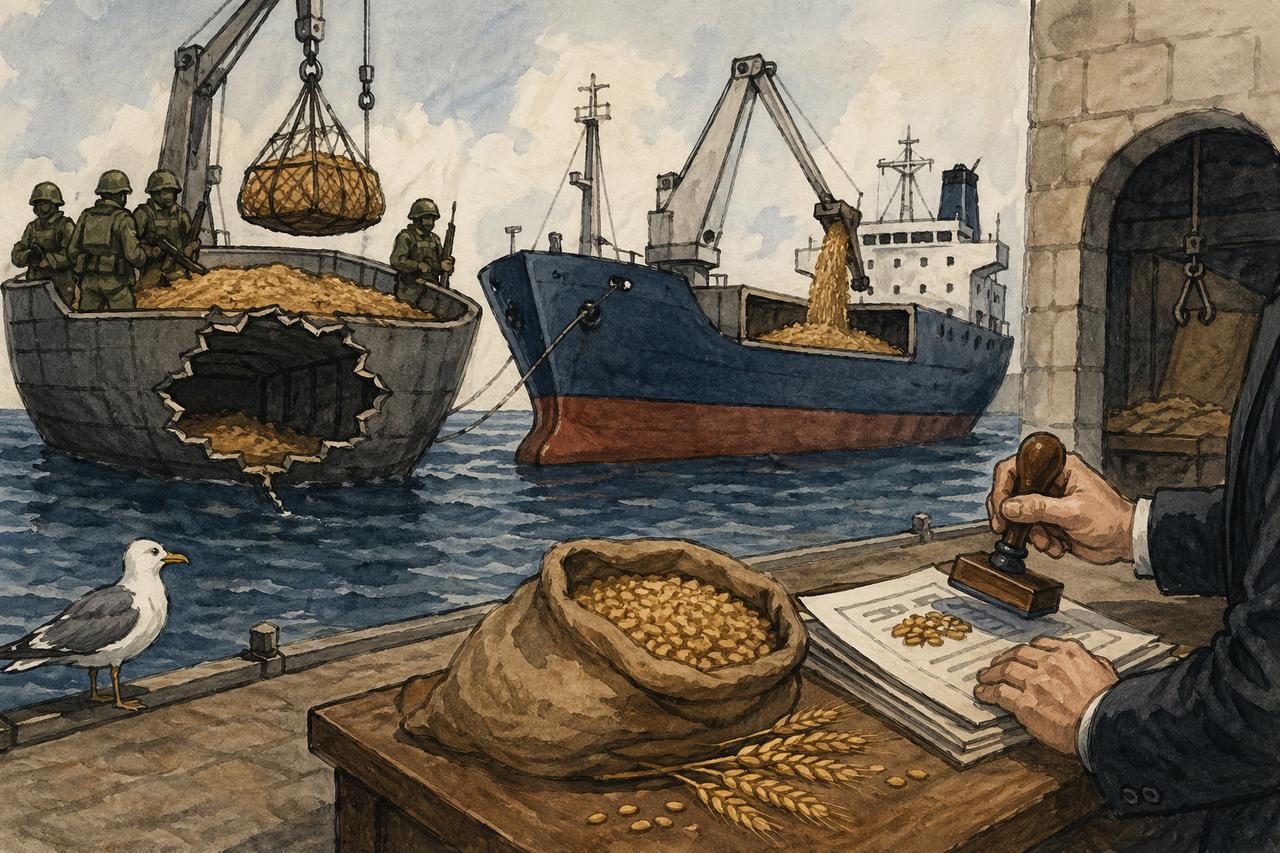 开源情报显示,这批小麦很可能是在克里米亚或别尔江斯克港口装船的,然后到俄罗斯本土的塔曼港或卡夫卡兹港转到另一艘船,来掩盖粮食的真实来源。这样做也让以色列有理由说自己“不清楚”。