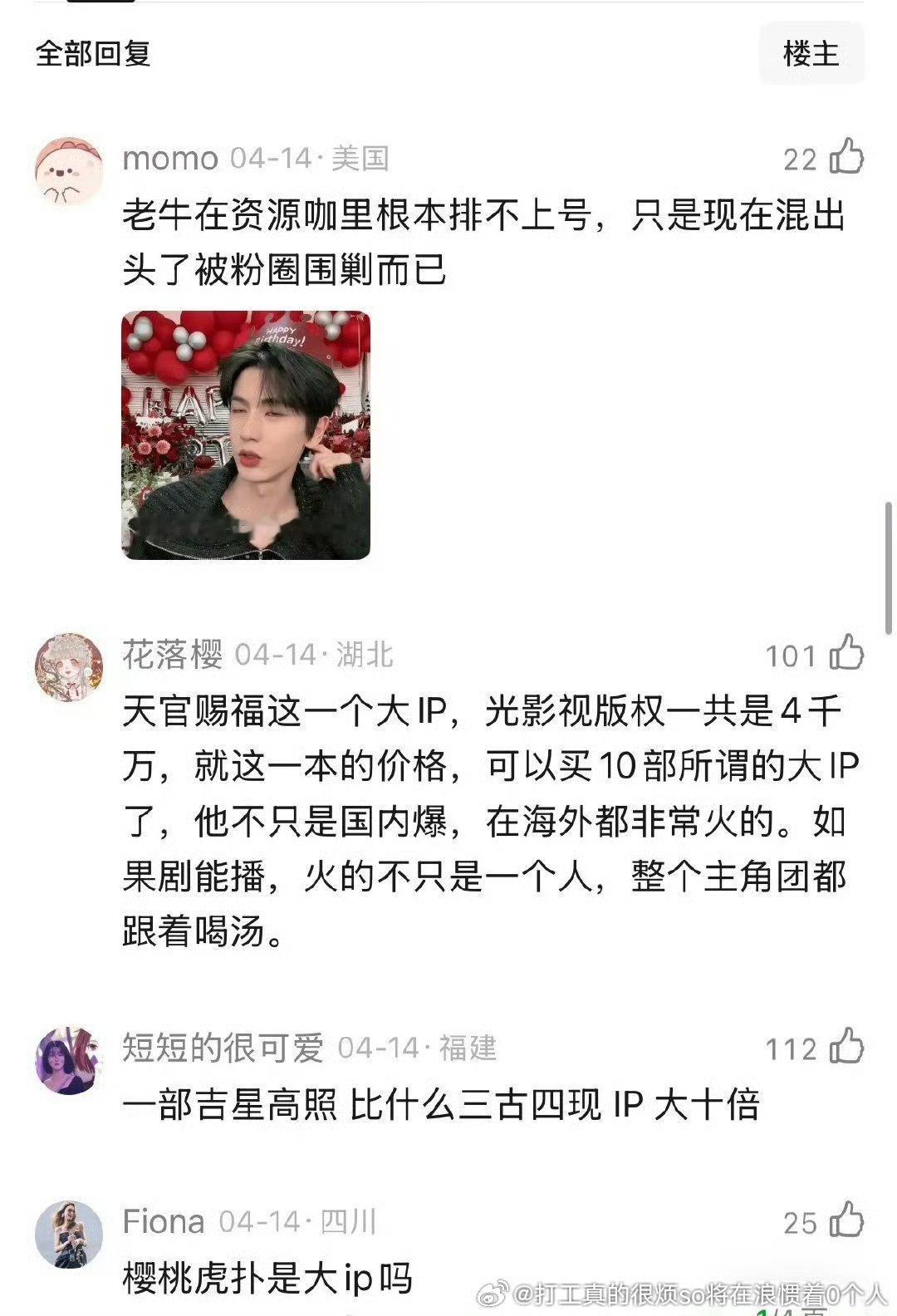 这个人和他前老公(白露)真是天生一对虐粉的手段都这么cu暴下作又e心别的我都懒得说,天官赐福陈情令这种耽美断层顶ip对男的来说就是以一胜十级别的顶级捧人Z源了