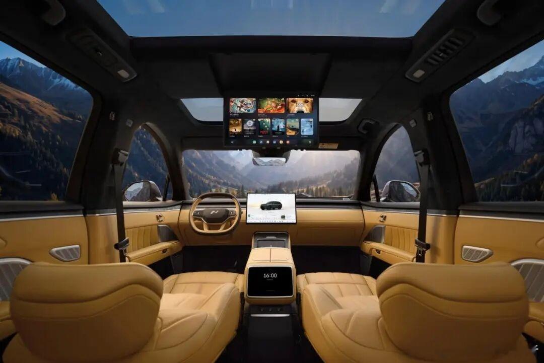 内饰方面,提供桂庭黄、云缦米、曜夜黑、月榕棕四种豪华内饰主题,旗舰级环抱座舱设计,融合超纤绒顶棚、浮光真木饰板和星河幻境环舱氛围灯。全舱四屏布局,搭载高通骁龙8295P芯片与17.2英寸3K横置中控屏。座椅搭载蔚来高端自研座椅平台,13层复合舒适结构,15mm软泡垫层配合高密度回弹材质,主副驾支持电动记忆调节、加热、通风、按摩。
