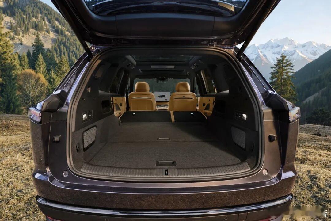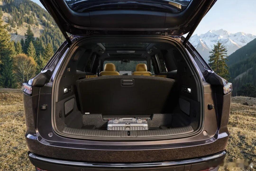 后备厢常规容积1200L,是中国量产SUV中最大的;二排完全放倒后拓展至2600L,纵深达2200mm,加上240L前备厢,整车最大储物空间达2840L。
