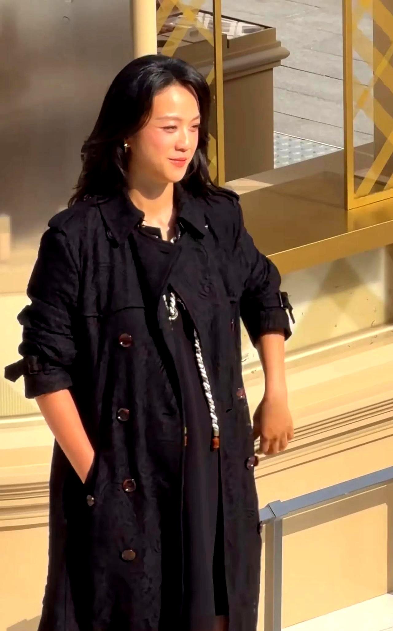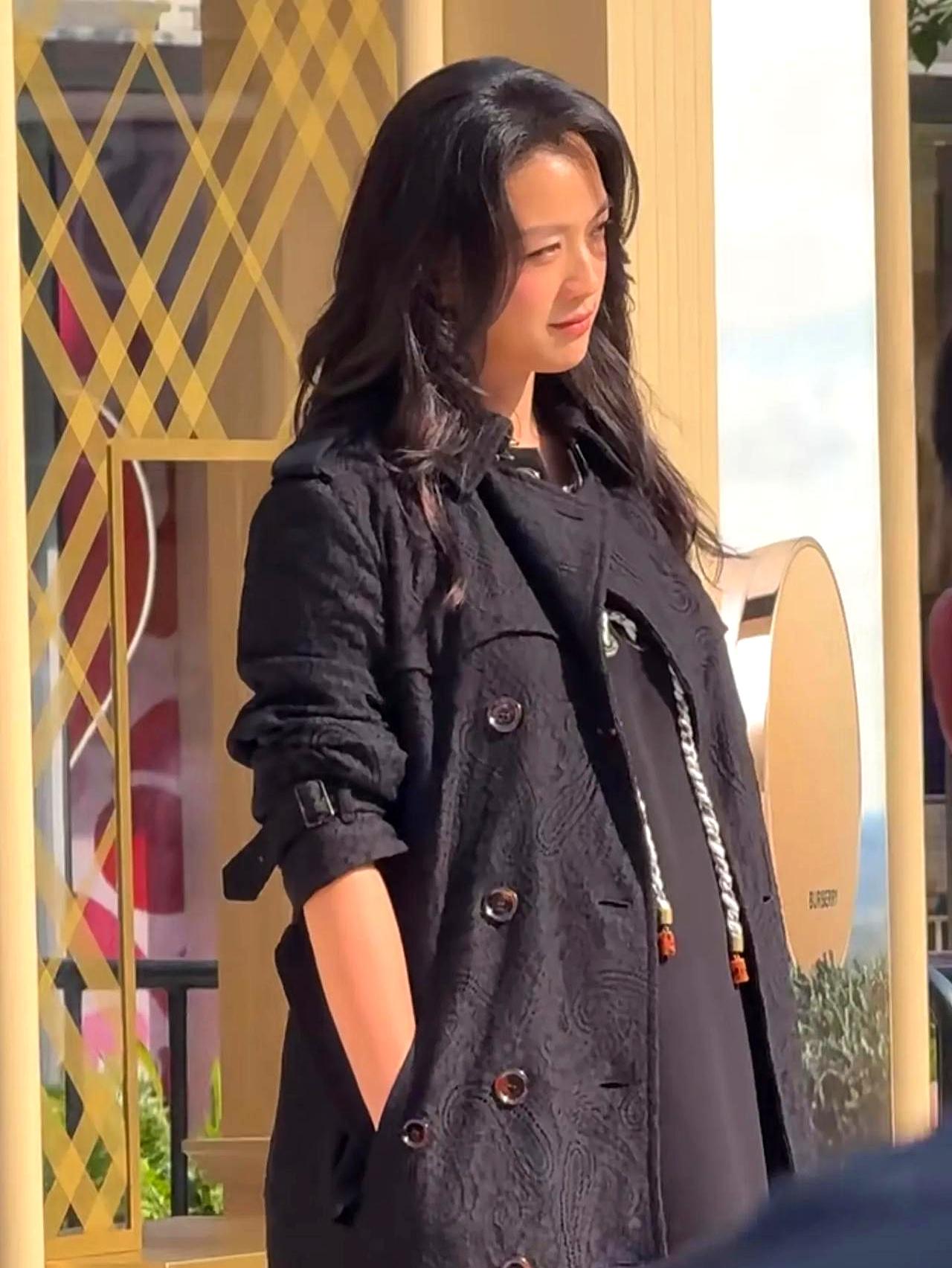 46岁的她出席活动,黑色风衣根本藏不住隆起的腹部,侧面看尤其明显。