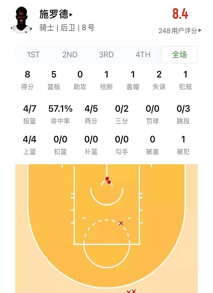 骑士队有些替补,看数据还行,一看比赛简直没法看。 施罗德就是个典...