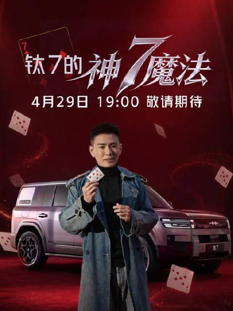 方程豹钛7EV闪充版上市发布会 4月29日19:00,方程豹钛7 EV闪充版上市发布会全网直播,携手魔术师邓男子,解锁车型独特魅力,共赴奇妙出行盛宴。方程豹钛7