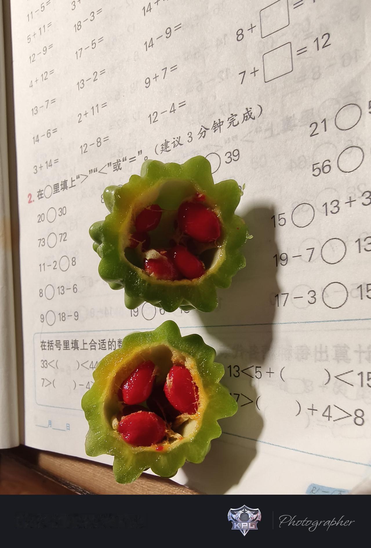 孩子在阳台上种的苦瓜,就是用来观察而已。成熟了的苦瓜也还是小小的,以前没啥糖吃,吃过熟了的苦瓜的红色的东西的,举个手!