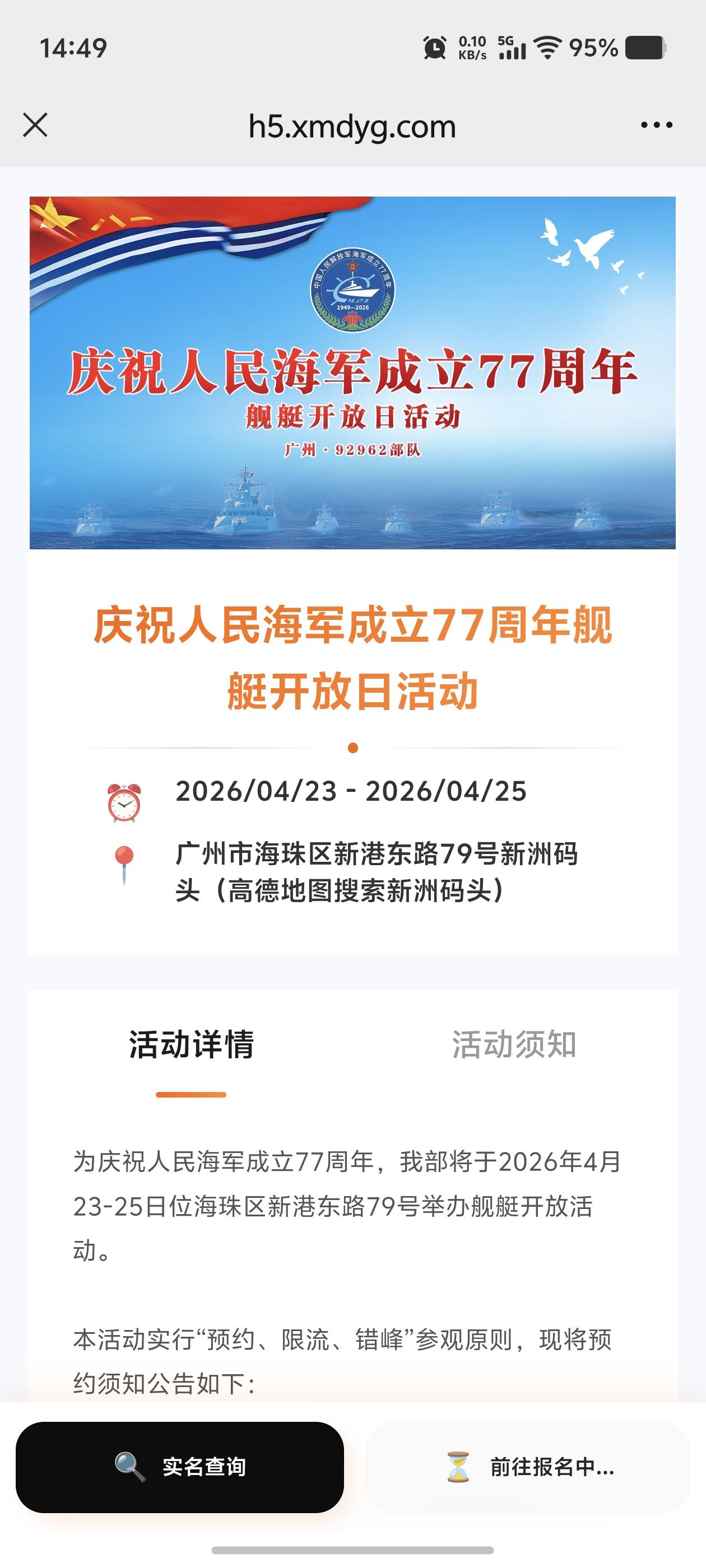 第一次想着预约广州舰艇参观,从开始整个上午连网页都进不去,到下午居然进去了,谁知