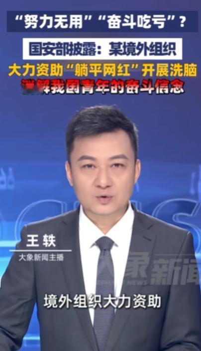 4月28日,国安部发布的一则通报直接撕开了这层伪装:某境外组织长期给国内一些“躺平网红”提供资金支持,这些账号靠着贩卖“努力无用”“奋斗吃亏”的毒鸡汤圈粉,再通过算法放大传播,一点点消解年轻人的奋斗信念。