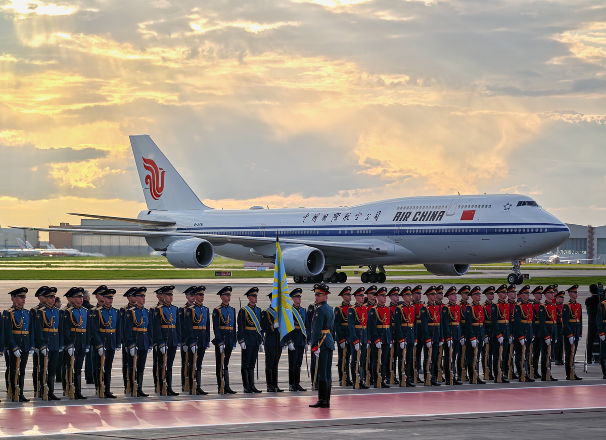 2025年5月7日至10日,国家主席习近平应邀对俄罗斯进行国事访问并出席纪念苏联伟大卫国战争胜利80周年庆典,图为国家主席习近平乘专机抵达莫斯科。新华社