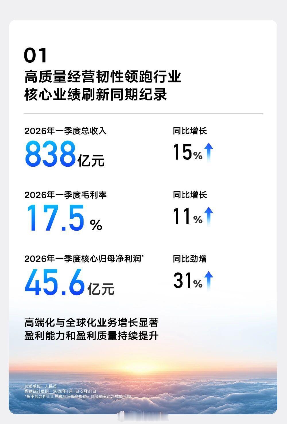 - 销量:一季度70.9万台,中国自主品牌第一。 新能源:36.9万台,占比过半。- 营收:838亿,同比+15%,首破800亿。 - 利润:核心归母净利润45.6亿,同比+31%,跑赢收入增速。 - 毛利率:17.5%。- 现金:602亿。