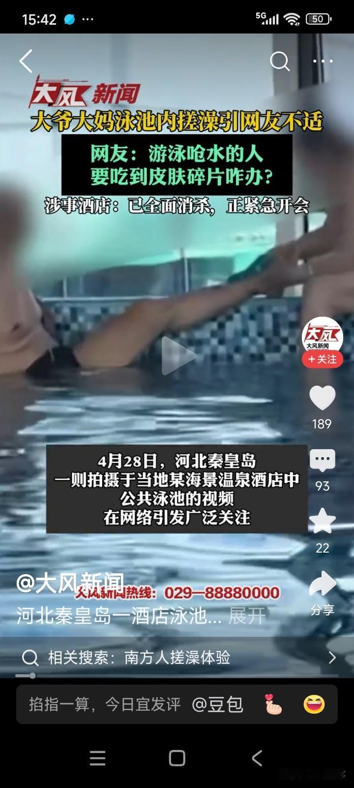 男子觉得这种行为既不文明,也不妥当,影响了他人游泳的体验。