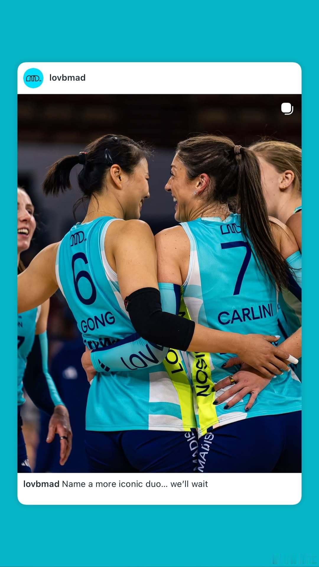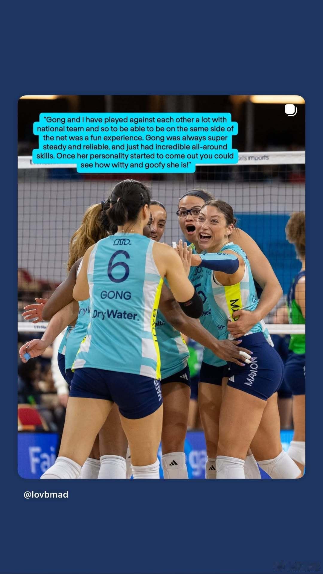 龚翔宇国际排坛动态LOVB麦迪逊队发布了龚翔宇和卡里尼的互动 卡里尼说:“我和龚翔宇在国家队比赛中交手过很多次,所以能够站在网的同一侧并肩作战是一次非常有趣的经历。龚一直以来都非常稳健可靠,拥有极其全面的技术。而一旦她展示出真实的个性,你就能发现她其实是多么幽默、多么可爱!”中国女排
