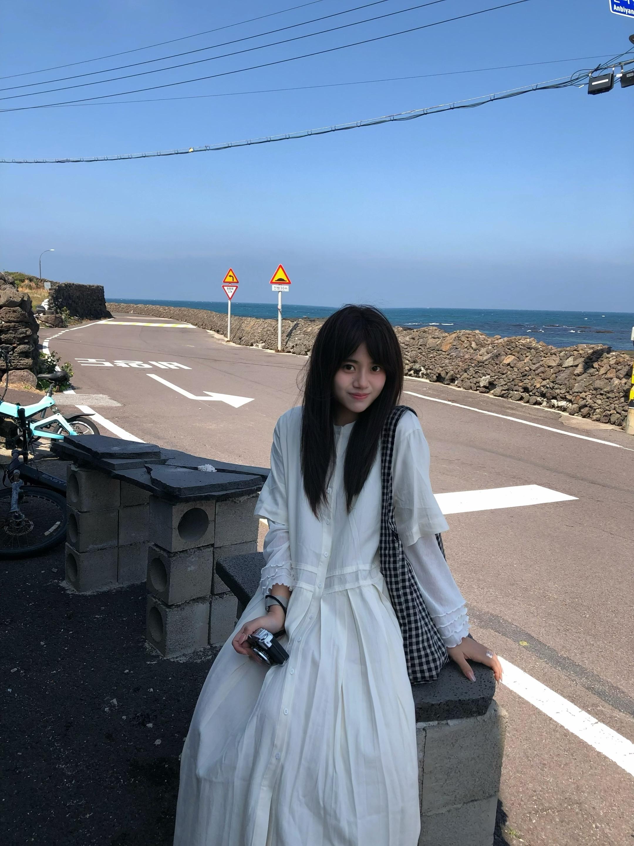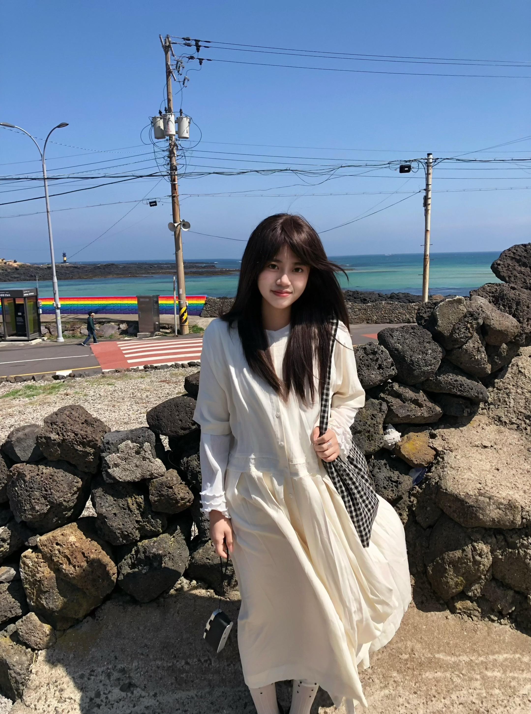 海边漫步,轻风拂面,自由自在。🌊👗💙