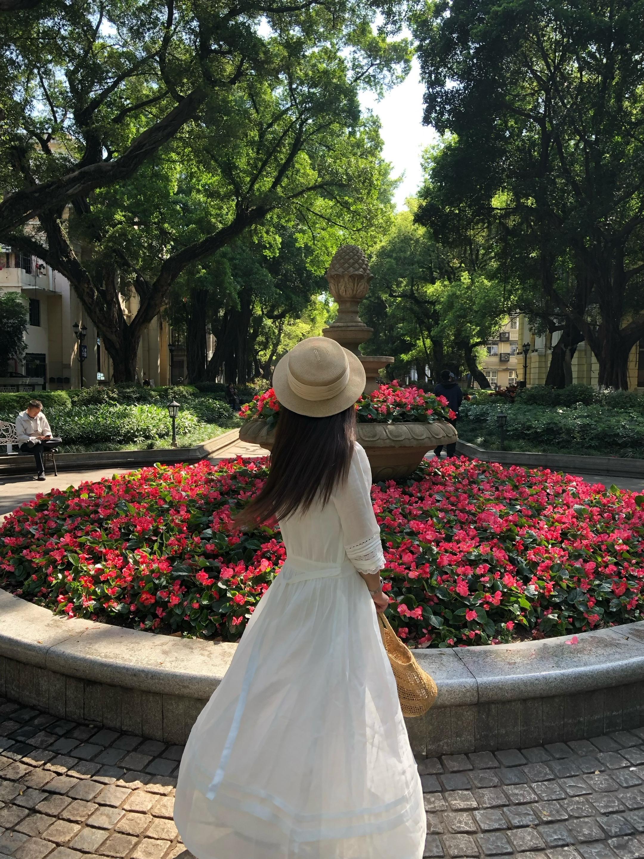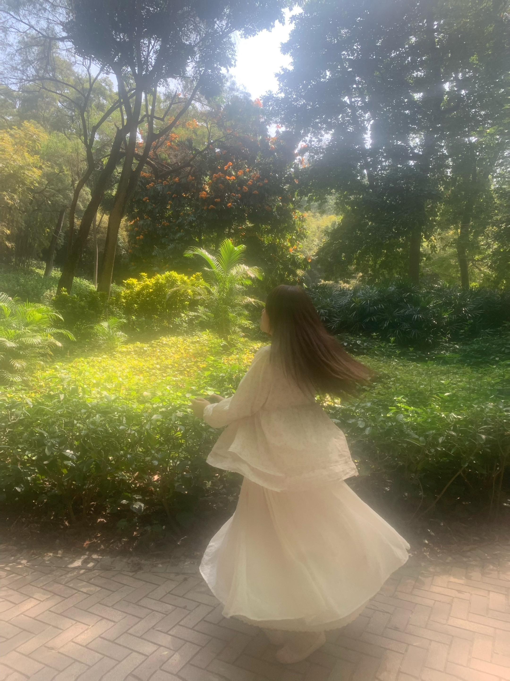 树影斑驳,阳光洒在裙摆上,像撒了一层金色的梦。温柔的风轻轻吹起发丝,仿佛时间也在