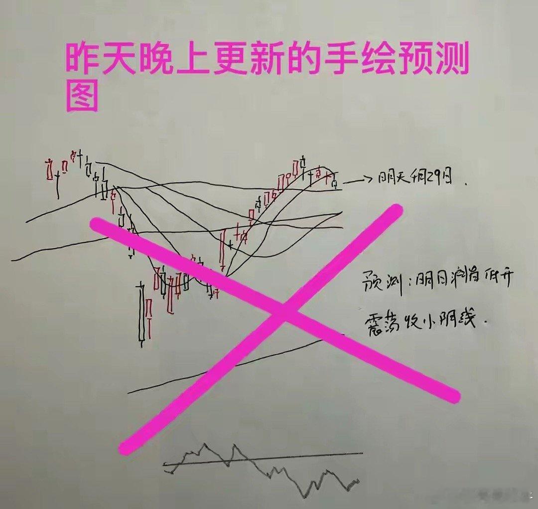 最后大家看一下我昨天更新的关于今天走势的手绘预测图。我知道很多朋友说我的判断是错的。其实昨天我的判断最核心的观点就是市场指数回踩60日均线。而今天市场实际上是通过直接的大幅低开,一步到位的回踩了60日均线,然后又在60日均线的基础之上产生了反弹。等于是把两天的走势合并成了一天。其实我的判断也不算偏离太远。大家可以看一下我昨天晚上文章的截图。今天的收盘点评就和大家说到这些,点赞就是对我这个纯技术派的最大支持。关于明天走势的手绘预测图,将会在稍晚一点更新。