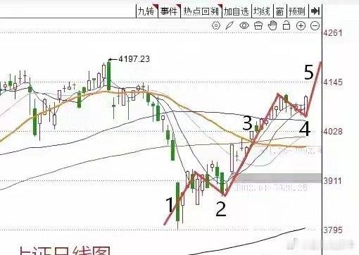 上证指数日线浪型结构走势第2种可能性大家可以发现,通过以上3点之后,我们可以简单的做一个小结:通过今天之后,总体维持多头思维不变。但是接下来市场可能会有两种不同的走法。两种走法都倾向于短线偏多的观点。